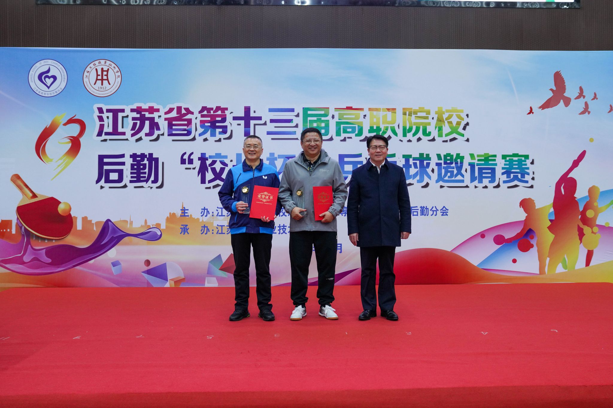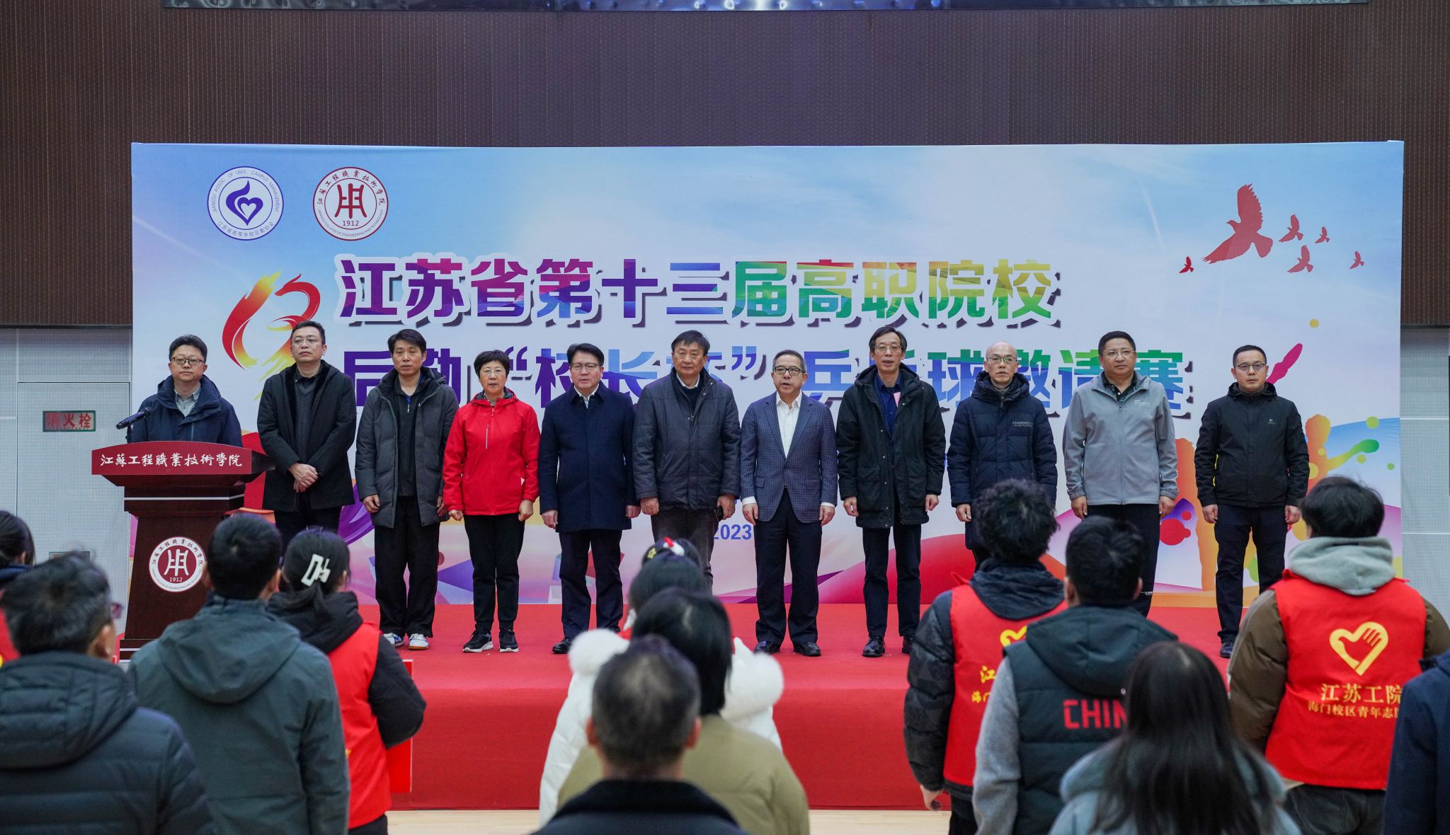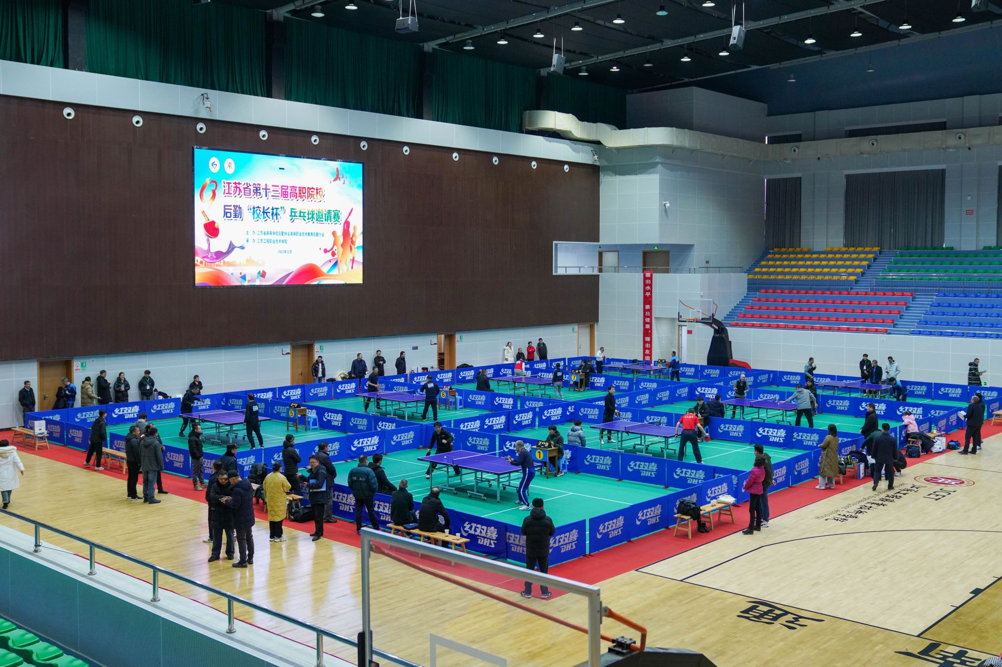 12月16日上午,由江苏省高校后勤协会高职分会主办、我校承办的江苏省第十三届高职院校后勤“校长杯”乒乓球邀请赛在学校体育馆举行。省高校后勤协会副会长、高职后勤分会会长、南京工业职业技术大学党委常委、副校长苏小冬,省高校后勤协会副会长、秘书长黄在宇,中国纺织服装教育学会会长倪阳生,省教育厅离退休处副处长梁杉,我校党委书记秦志林,党委副书记、校长陆锦军,党委委员、副校长孙兵以及来自省内16所高职院校的50余名领导参加开幕式。开幕式由孙兵主持。