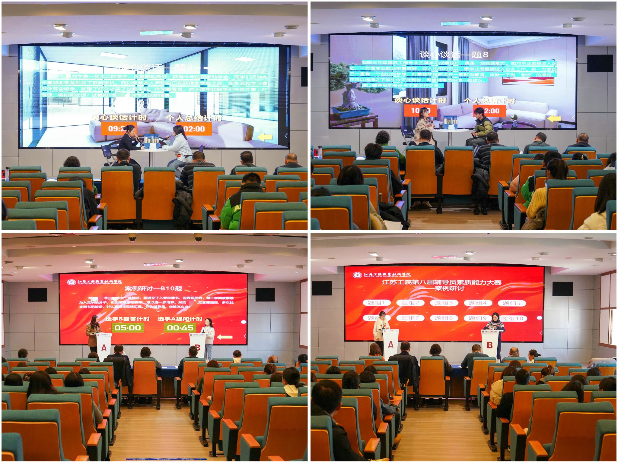 本届辅导员素质能力大赛自2023年8月启动,分为基础知识测试、案例研讨和谈心谈话三个环节。全体辅导员参加了基础知识测试,通过闭卷考试的形式,综合考察了辅导员对理论政策和学生日常教育管理相关知识的掌握程度;案例研讨以“个人陈述+问答”的方式,由AB两位选手依次围绕各自抽取到的案例辨析原因、研讨对策、总结规律;谈心谈话主要考察辅导员对学生成长成才规律的了解把握程度,对学生的教育引导能力、解决理论困惑和实际问题的能力等。