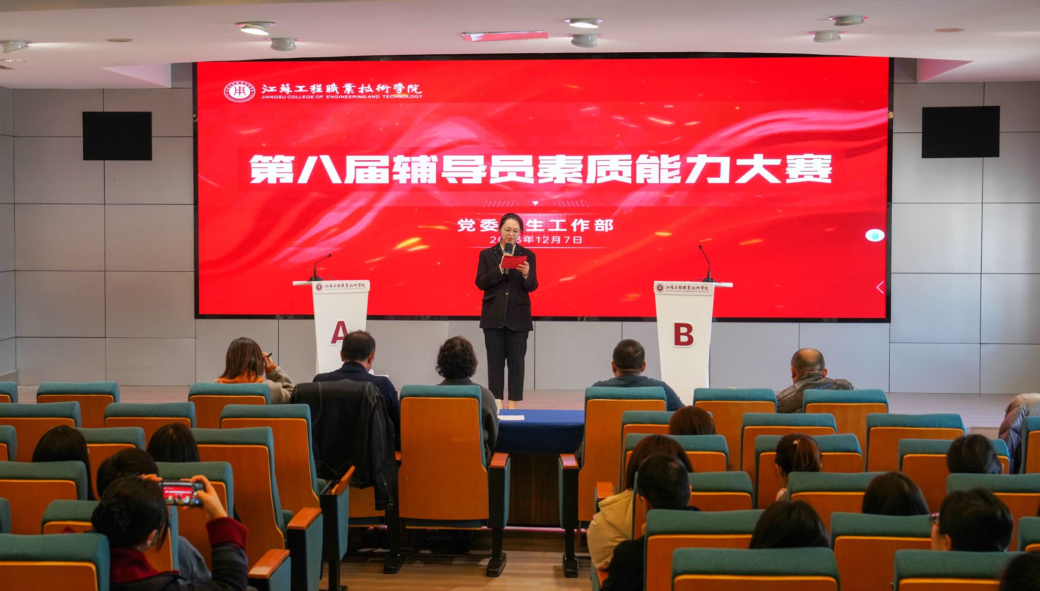 1月4日下午,我校在崇川校区强毅楼演播厅举行第八届辅导员素质能力大赛决赛。校纪委副书记郭智君,海门校区管理办公室主任于镇洲,工会主席程莉,团委书记徐磊,学工部副部长刘宇出席并担任此次大赛评委。校党委委员、副校长丛彬彬,党委学工部部长徐明、副部长朱平,各学院学生工作领导、辅导员和学生代表到场参加活动。