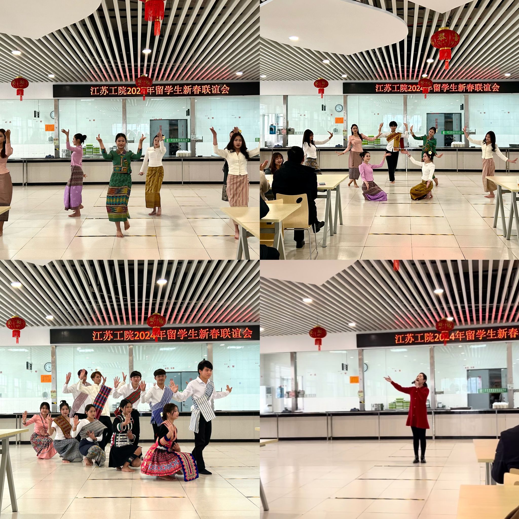 今年有150名留学生在校过年。联谊会在留学生的歌舞串烧中正式拉开帷幕,老挝留学生用歌声和舞蹈共迎新年,共话友谊,歌曲《月亮代表我的心》《害怕和你不合适》、舞蹈《美丽老挝》《开门节快乐》《彩云之南》等节目让现场气氛热烈,经济管理学院教师吴澄艳一曲《芦花》更是将现场气氛推至高潮,台下掌声雷动。