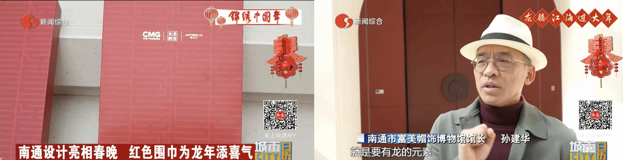 2024年春晚亮相的龙蟠霓巾文创产品别具一格,向全世界展示了中国文化的博大精深和独特魅力,让人们感受到了传统文化的韵味。该龙蟠霓巾由康赛尼上海中心、南通富美帽仕汇等共同开发设计与制作,龙蟠霓巾产品包装设计任务由我校艺术设计学院专业老师丁健、李楠主创完成。