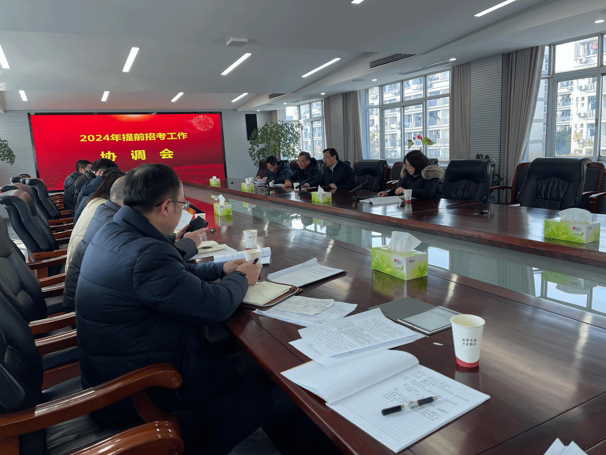 2月26日下午,学校召开2024年提前招考工作协调会,部署提前招考工作实施方案。校党委副书记、校长张忠,党委副书记邓海龙、副校长孙兵,各相关职能部门负责人出席会议,会议由邓海龙主持。