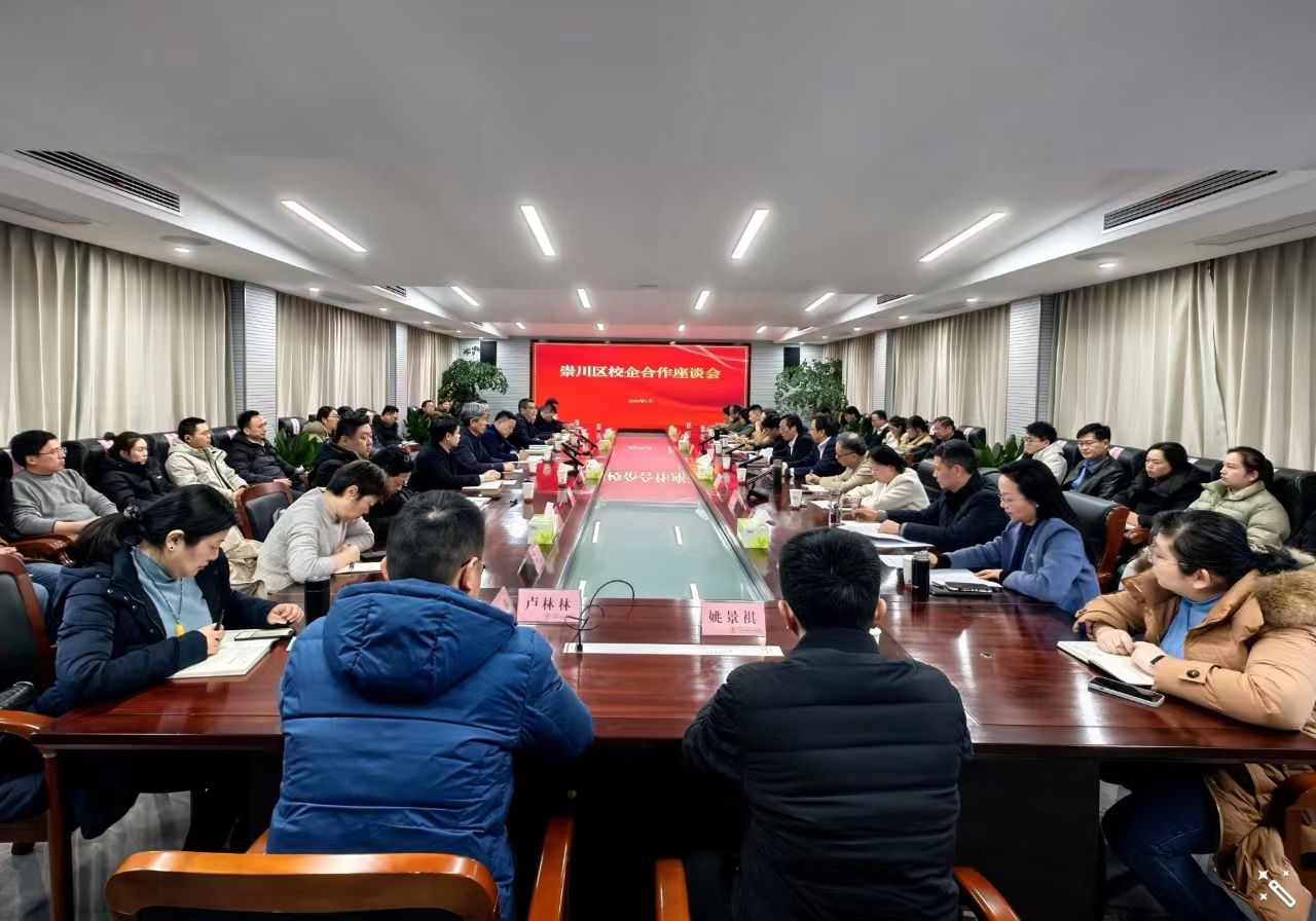 2月28日下午,崇川区校企合作座谈会在我校举办。崇川区委副书记、区长杨万平,区政府副区长徐炜,南通市集成电路产业科技镇长团团长、区政府党组成员殷安生等出席活动。校党委书记秦志林,党委副书记、校长张忠,南通大学、南通理工学院、南京邮电大学南通研究院、南京信息工程大学南通研究院、江苏航运职业技术学院等院校相关领导,南通大地电气股份有限公司,南通新帝克特种纤维有限公司等企业代表参加活动。