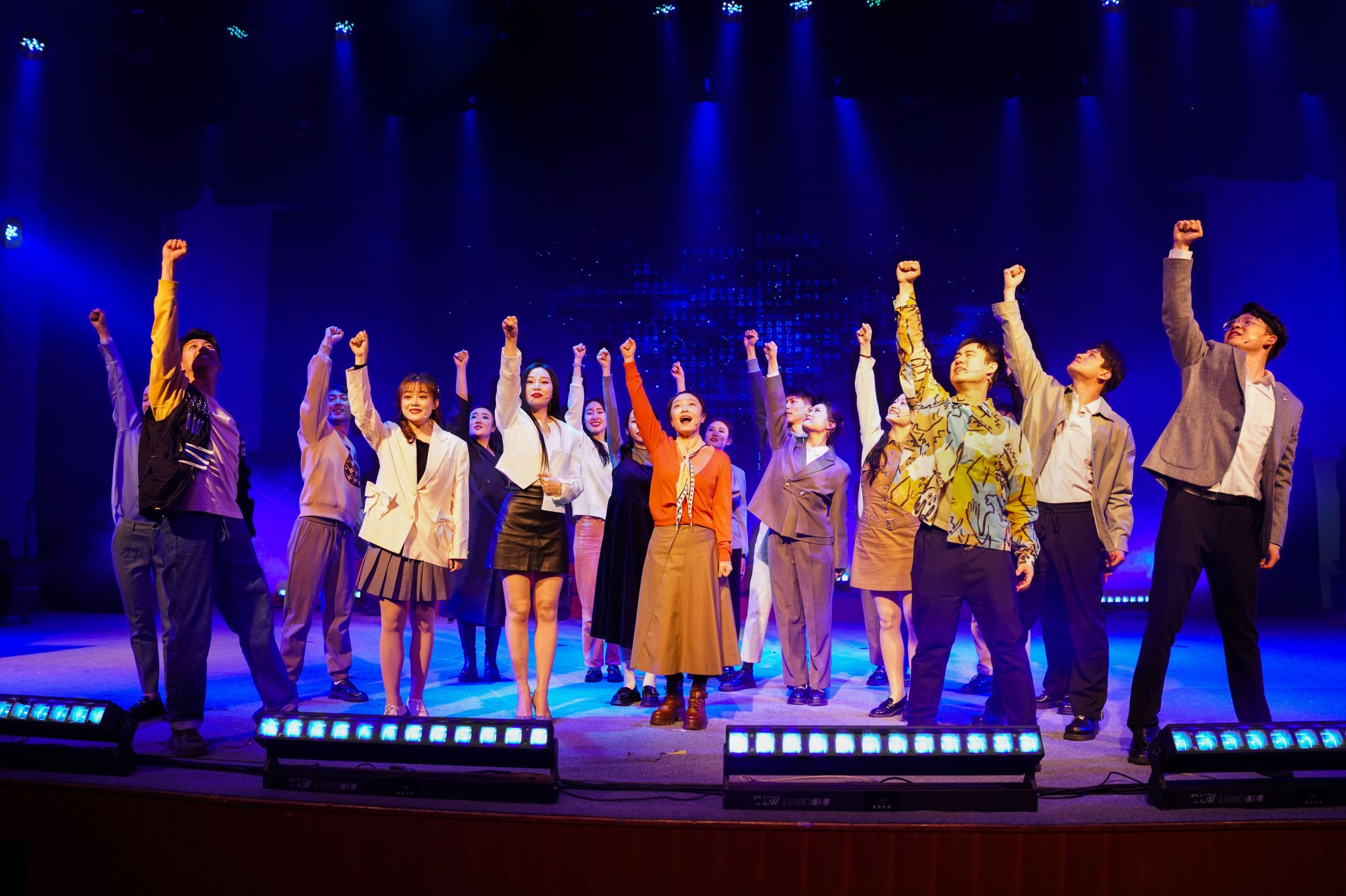 原创音乐剧《有一座城》是2022南通市重点文艺精品扶持资助项目,该剧讲述了一群面临择业的大学毕业生,怀揣着对未来的憧憬,在南通这座城市相遇,演绎了一段段精彩的创业故事。全剧以时尚的流行音乐和唱法,融汇摇滚、爵士、民谣、拉丁以及管弦乐、民族音乐等元素,以现代舞、流行舞为主要舞蹈风格,剧情冲突直接有力,节奏明快紧凑,舞台效果时尚、酷炫,为我校师生献上了一场精神盛宴。他们的精彩表演赢得现场观众阵阵掌声。