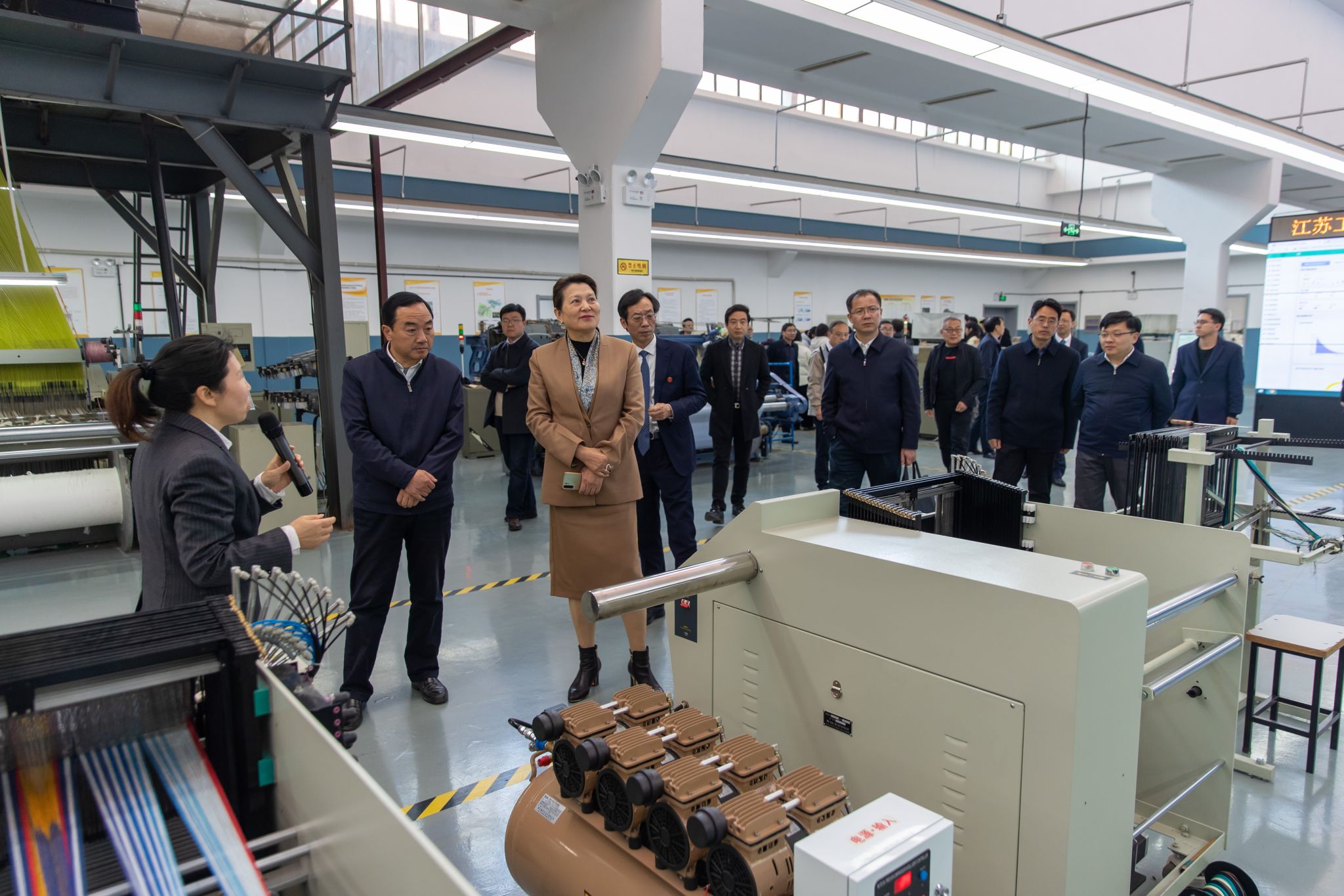 汇报会后,专家组分组审核了学校层面、专业群层面、财务层面的材料,开展了师生在线问卷调查,访谈了校领导和建设项目相关负责同志,集体实地考察了纺织实训中心、服装智能制造中心、绿色生态染整实验室、江苏省先进纺织工程技术中心,线上考察了海门校区库卡机器人实训基地。