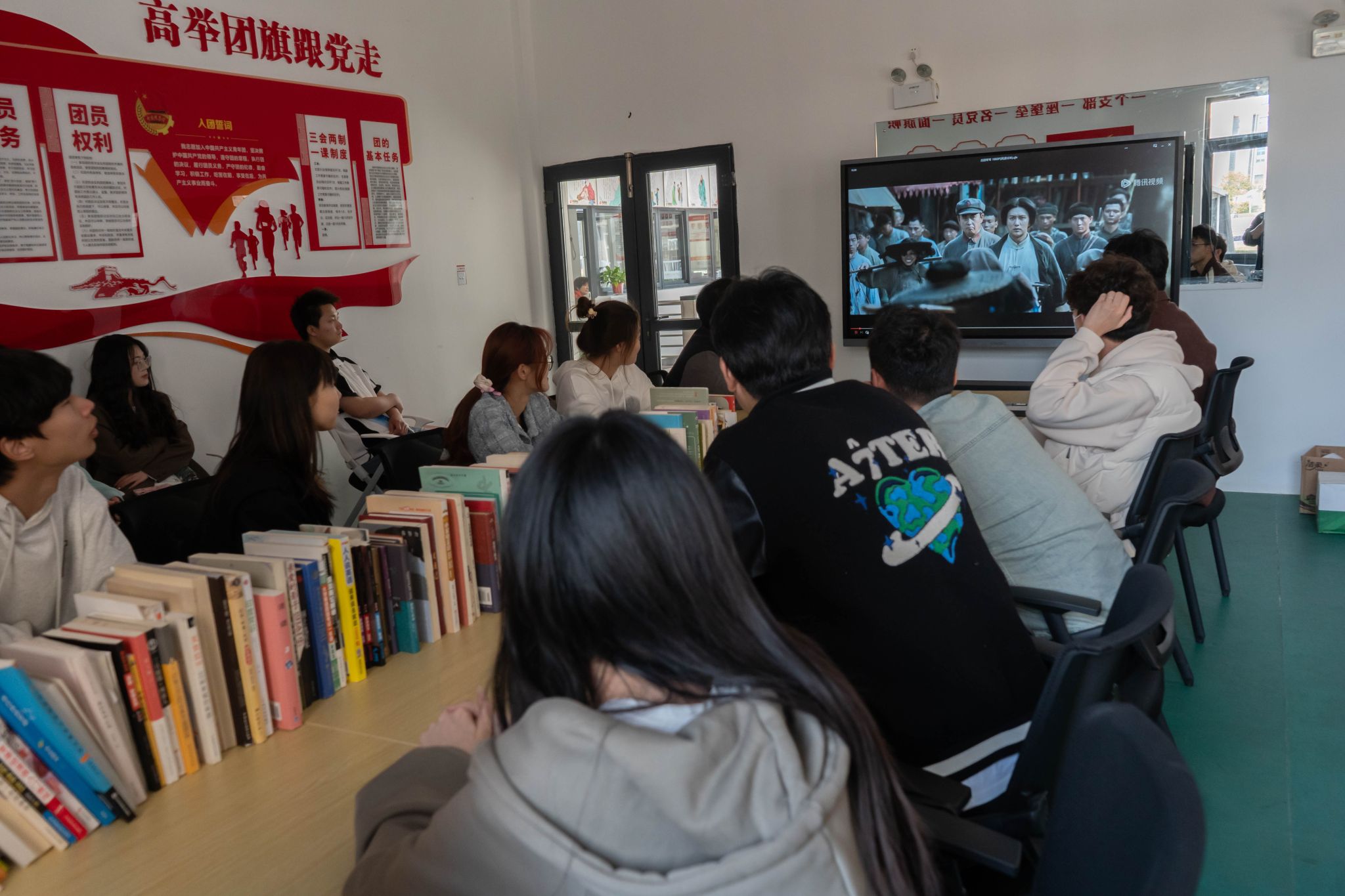 在海门校区“一站式”学生社区阜生社区党团活动室,入党积极分子集中观看了电影《古田军号》。影片以红军小号手后代的视角,讲述了青年革命领袖带领红四军面对重重磨难,在绝境中历经艰难探索真理,开辟革命成功之路的非凡历程。大家纷纷表示,《古田军号》“吹响”的是一种激昂人心的“冲锋号”,中国共产党人和红军将士面对艰难险阻不屈不挠、敢于斗争、勇于牺牲的品质精神令人动容,新时代的青年更应凝心聚力、踔厉奋发,为实践信仰和理想冲锋陷阵,为奋进强国新征程汇聚青春力量。