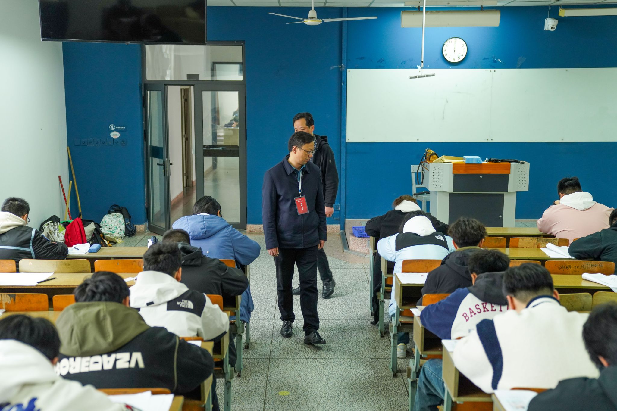 校党委书记秦志林,校党委副书记、校长张忠,校党委副书记邓海龙和相关职能部门负责人深入考场详细了解考生参考情况,巡查考务布置、考场秩序、应急处置等各环节工作,并与送考的家长们进行了亲切交流。(招生就业处 王天昱/图文 陆卫峰/推荐 储玲/审核)