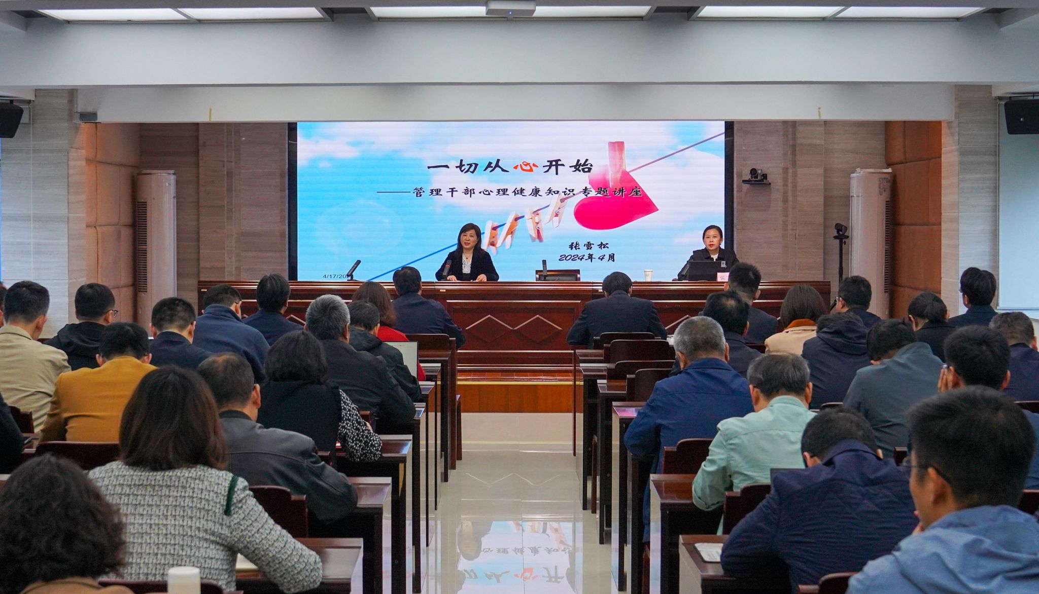 4月17日上午,我校在行政楼第四会议室举办管理干部心理健康知识讲座。全体校领导、中层干部参加培训,党委委员、副校长丛彬彬主持会议。
