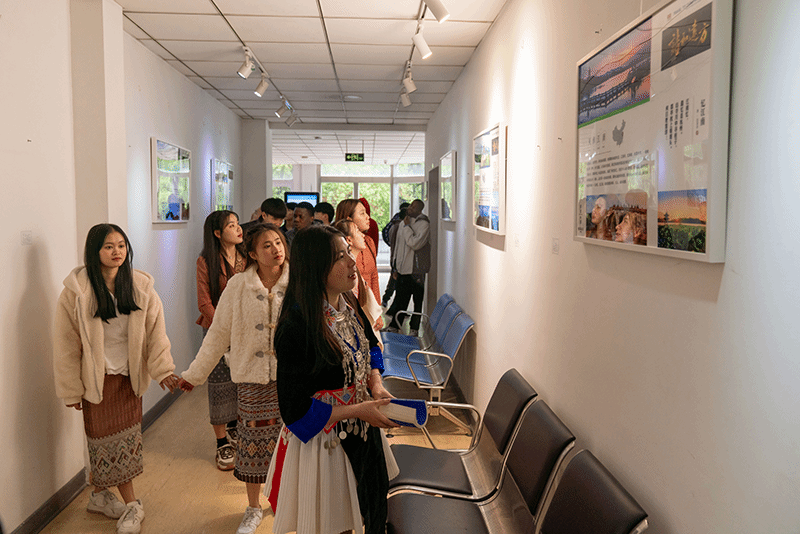 在崇川校区图书馆文化长廊上,留学生们参观了“跟着诗词游中国”主题展,共同了解中华大地优秀的诗词文化。通过观看此次展览,引导留学生们在中国优秀传统文化的世界里尽力去追逐探索,镌刻铭记,使他们更加了解中华悠久的历史和文化。