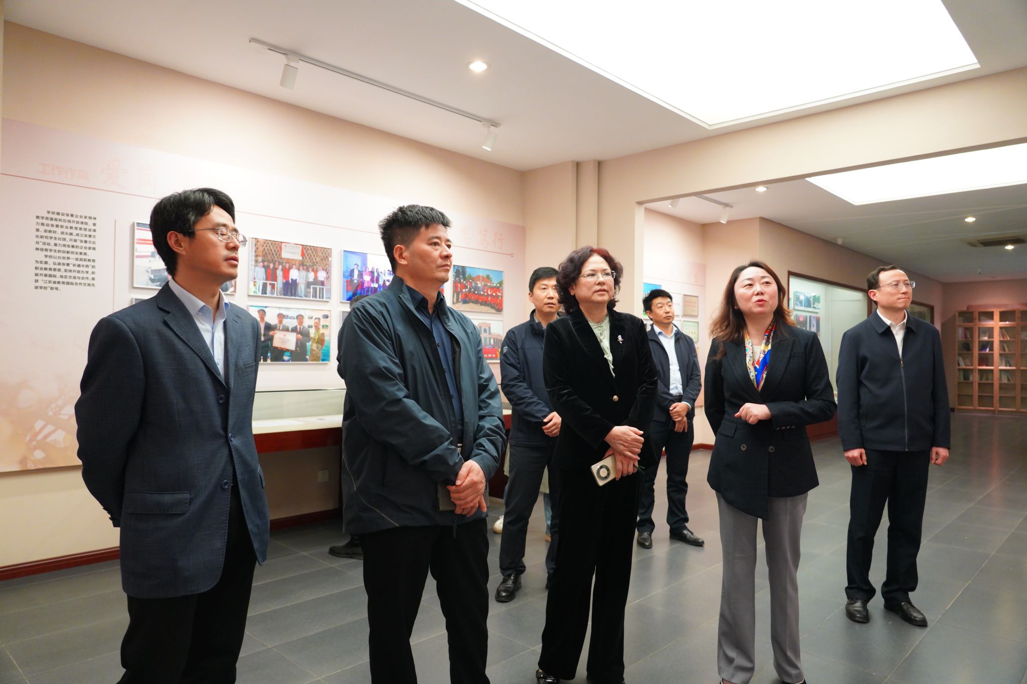 周瑞峰一行实地参观了我校张謇职教思想陈列馆,了解了馆藏及其历史,对馆内精巧设计与丰富展品以及浓厚的文化氛围给予了高度评价,对我校多年来开展职业教育的办学成果、社科普及活动的开展以及社科普及基地的创建等工作所取得的成绩表示了充分肯定。