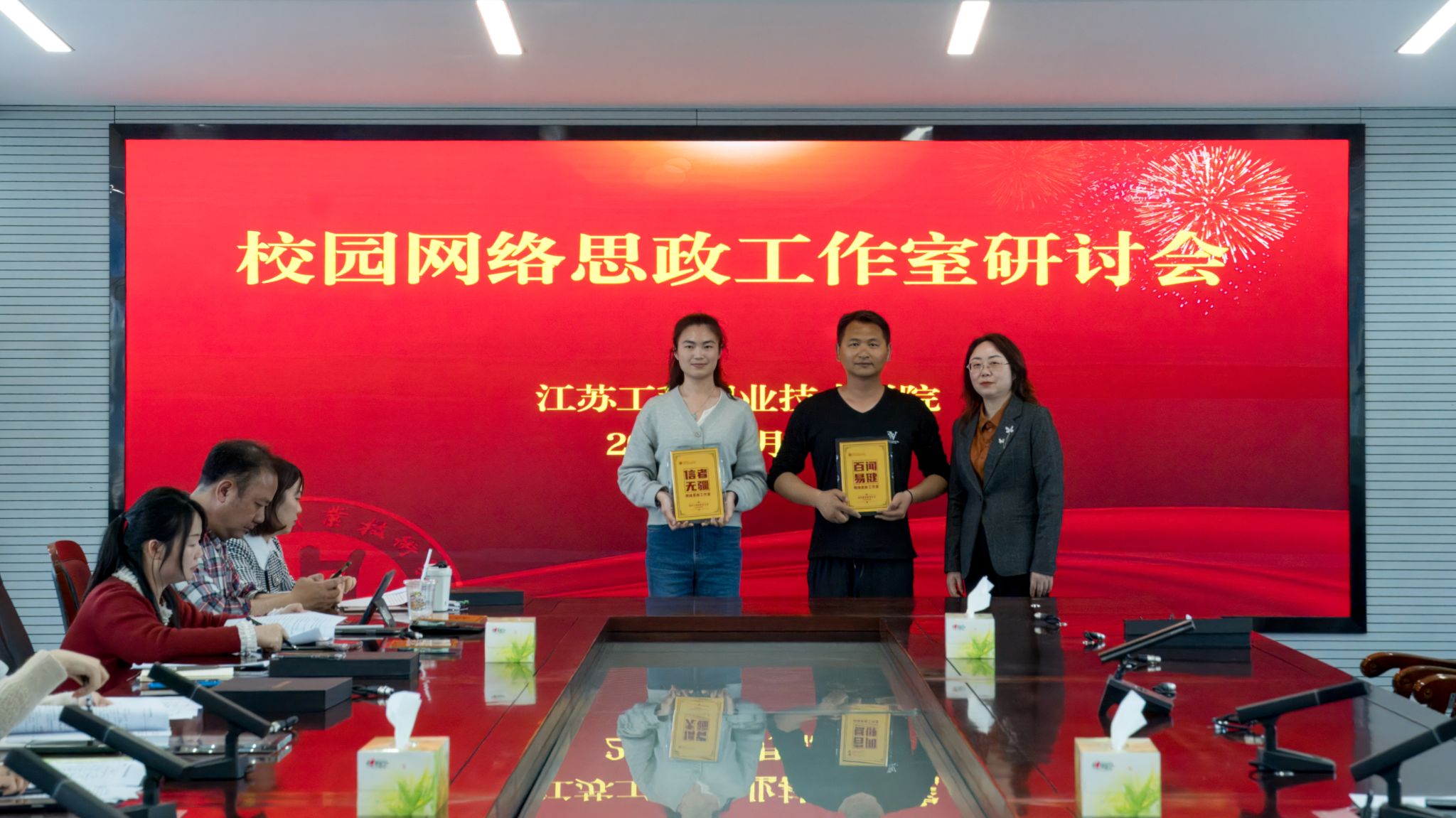与会人员汇报了各自工作室的已有基础、前期工作开展等基本情况,阐述了下一阶段工作开展的思路与计划,并就工作室建设、运营、管理等相关问题作了交流研讨。蒋丽华针对后续工作室网络作品创作的方向与要求、传播的载体与平台等方面问题作了具体说明。王希颖围绕校园网络思政工作室建设的平台搭建、经费使用、技术支持和建设培育等方面做了指导。