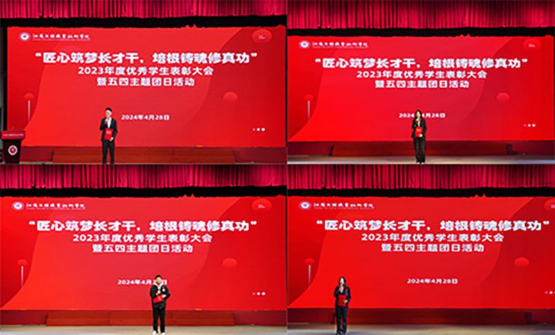 大会对600余名先进个人和30多个先进集体进行了集中表彰,其中包括2023年度在市级以上文体科创竞赛中获奖的学生、省市社会实践与志愿服务先进个人、省市三好学生和优秀学生干部、省市先进班集体、在各项专业技能竞赛中取得优异成绩的个人与团队,国家励志奖学金及国家奖学金获得者。与会校领导、相关职能部门和二级学院(部)负责人、辅导员代表、指导教师代表分别上台为获奖学生颁奖。