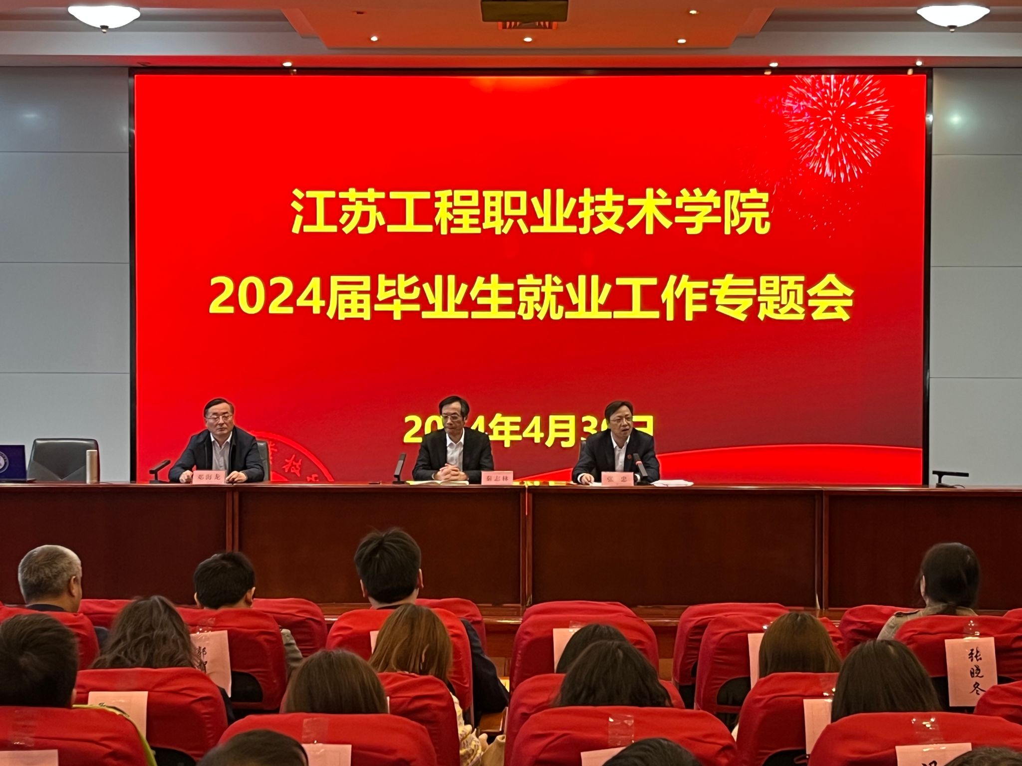 4月30日下午,我校2024届毕业生就业工作专题会在致知楼三楼报告厅召开。校党委书记秦志林,校党委副书记、校长张忠,校党委副书记邓海龙,招就处、教务处、学工处、创新创业学院等部门负责人、各二级学院党政负责人、就业指导中心工作人员、全体就业辅导员、二级学院各专业负责人及2024届毕业班全体班主任参会。会议由张忠主持。
