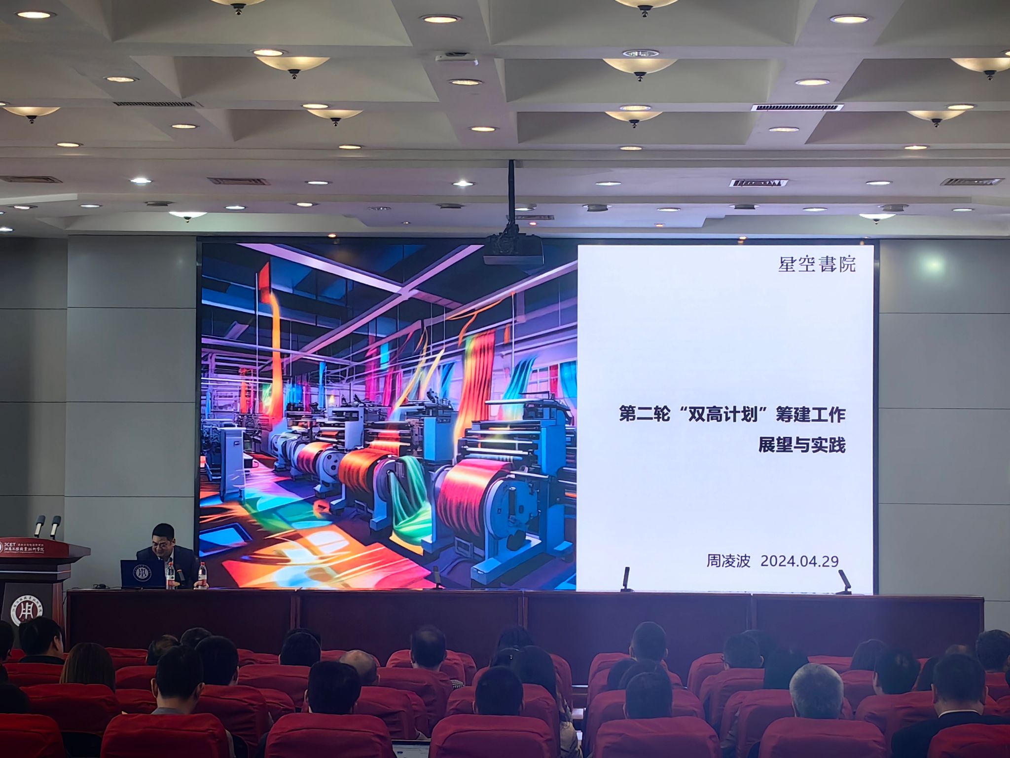 周凌波从四个方面对学校未来的“双高”建设进行了规划与展望。他对职业教育新一轮改革政策进行了研判解读,从学校层面和专业层面出发强调了新一轮职业教育改革发展重点建设任务。他指出,要立足省域和新质生产力,找准“价值点”和“结合点”,深入推进“五金”新基建建设,为下一轮“双高”建设做好竞争突围谋划。周凌波还对学校第一轮双高建设成效进行了比较分析,并对即将到来的下一轮双高建设筹备建设提出建议。