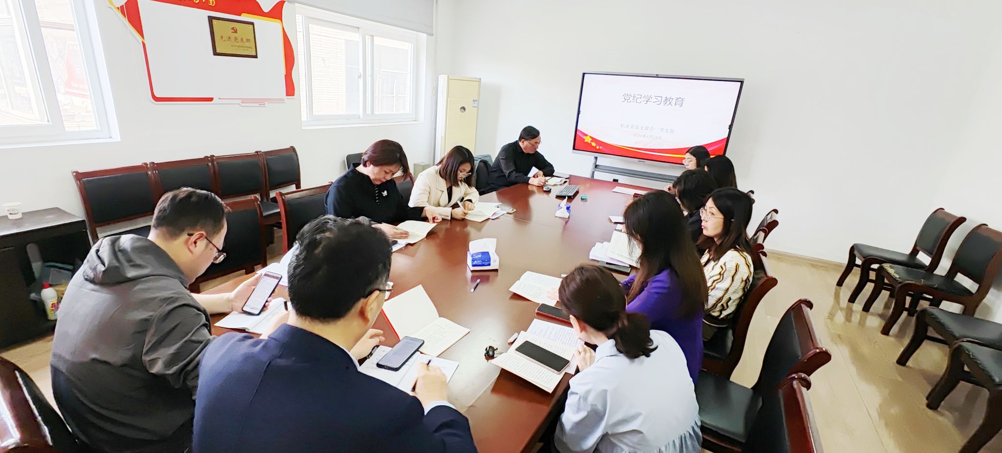 4月24日下午,联合一党支部在崇实楼202室开展党纪学习教育。会议由支部书记储玲主持,校党委副书记邓海龙和全体党员参加了学习会。