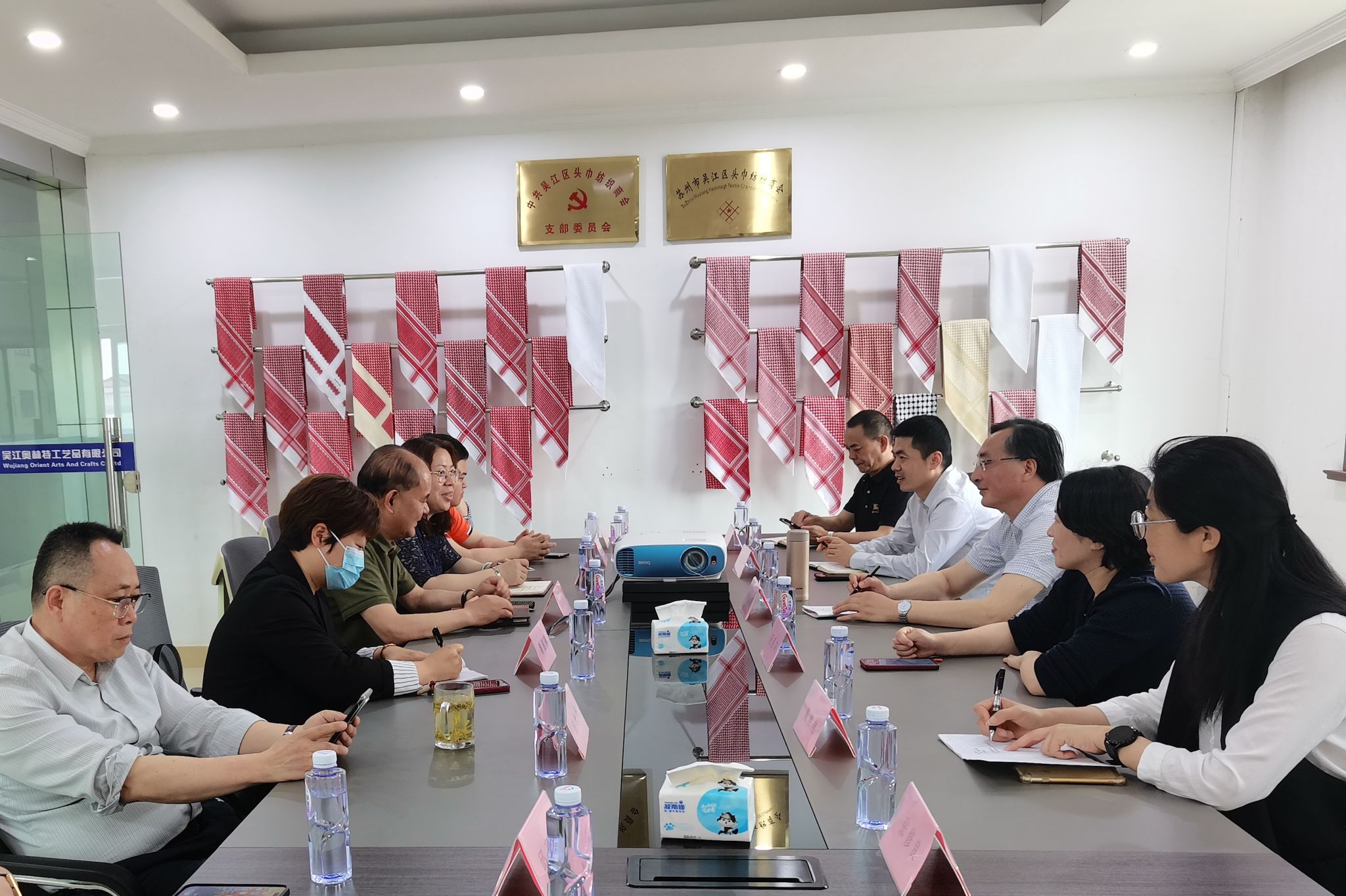 5月9日,校党委副书记邓海龙带队赴苏州市吴江区头巾纺织商会开展访企拓岗合作交流。纺织服装学院党总支书记夏爱萍、党总支副书记刘桂阳、服装工程教研室主任陈伟伟参加交流。