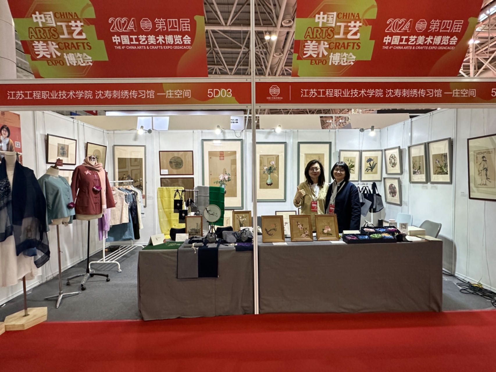 5月9日,在2024中国工艺美术博览会上,我校省职业教育南通国家级非遗染织绣技艺技能传承创新平台携优秀作品参会。我校张蕾老师带领师生团队创作设计的刺绣作品《水韵江苏》《品茶图》《索句图》和刺绣文创产品《繁花系列紫藤花开》以及纺织服装学院高月梅、张姝、魏红三位老师创作设计的蓝印花布文创产品《与凤行》参加本届工艺美术设计创新大赛。其中,《水韵江苏》获2024“百鹤杯”工艺美术设计创新大赛百鹤金鼎奖。