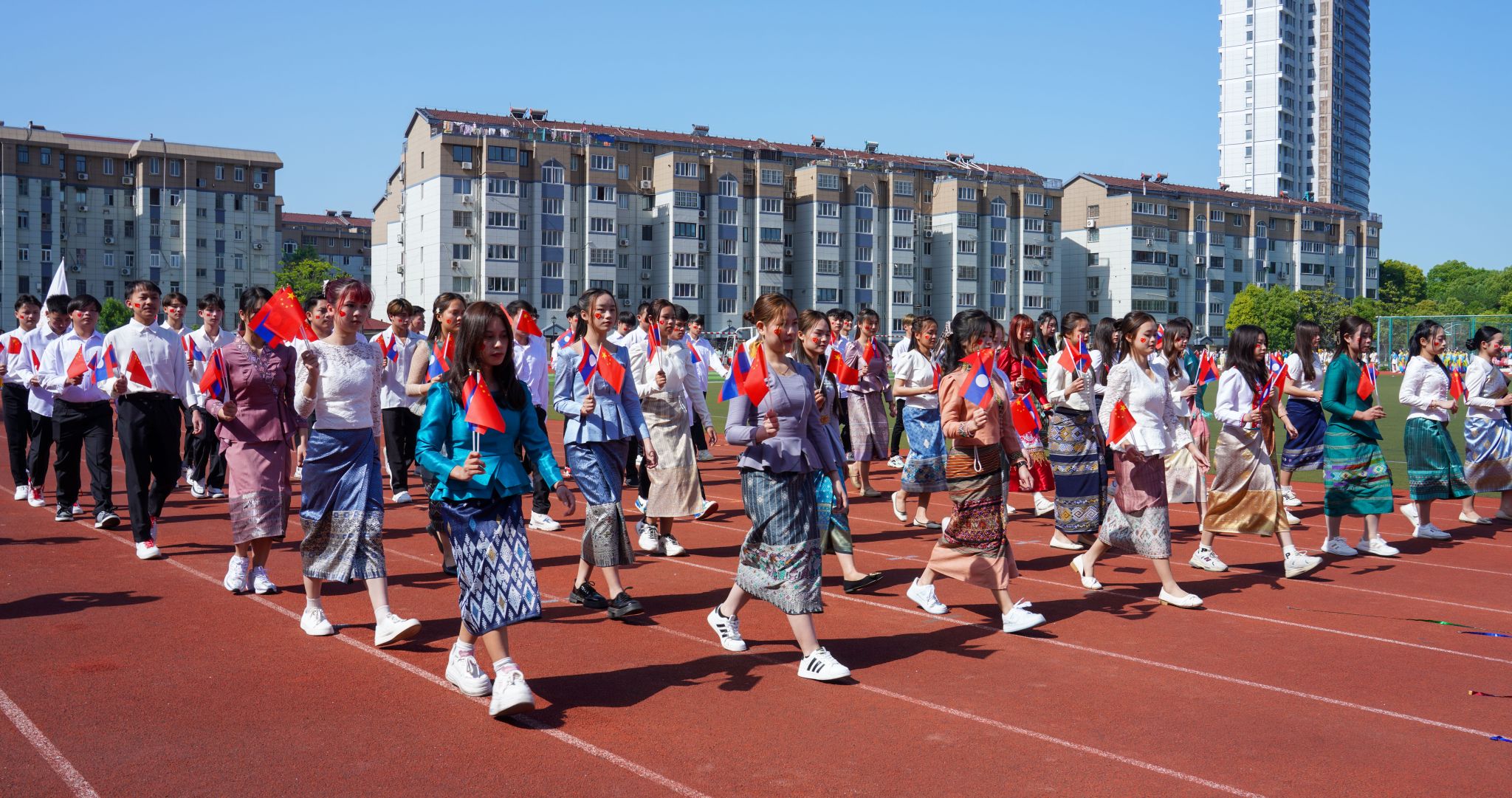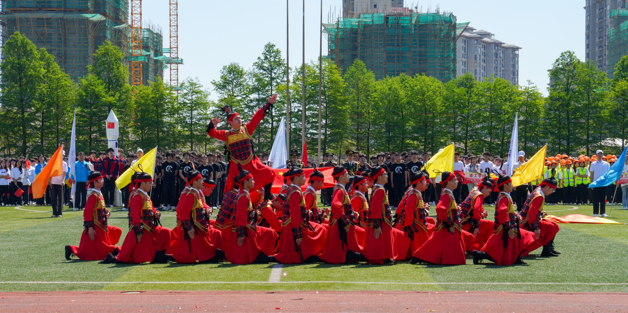 开幕式上,伴随着激昂的运动员进行曲,各学院运动员方阵身着各自专业特色的服装,喊着嘹亮的口号依次入场,展示了工院师生的蓬勃朝气,也为现场观众带来了一场视觉盛宴。航空与交通工程学院学生带着他们的火箭模型在跑道上模拟发射;建筑工程学院学生头戴安全帽,身穿工作服,动作整齐划一;信息工程学院师生共同上阵,用键盘元素展示专业特色;经济管理学院老挝留学生们手举中、老两国国旗,用舞蹈展现不一样的民族风情;艺术设计学院团扇舞将中国古典美体现得淋漓尽致.....来自建筑工程学院的学生们手持战旗和扇子,动作刚劲有力,翩若惊鸿;智能制造学院以兵马俑为主题,用舞蹈展开中国历史画卷;《功夫扇》的百人表演方阵在教师的带领下以太极拳开场,气势恢宏、行云流水;《古风新韵》更是将舞龙舞狮、太极拳、花球啦啦操等运动融合到一起,以中华图腾、生生不息、活力四射三个篇章,体现中国深邃的历史文化、天人合一和谐共生的人文精神和中国日新月异的发展面貌。