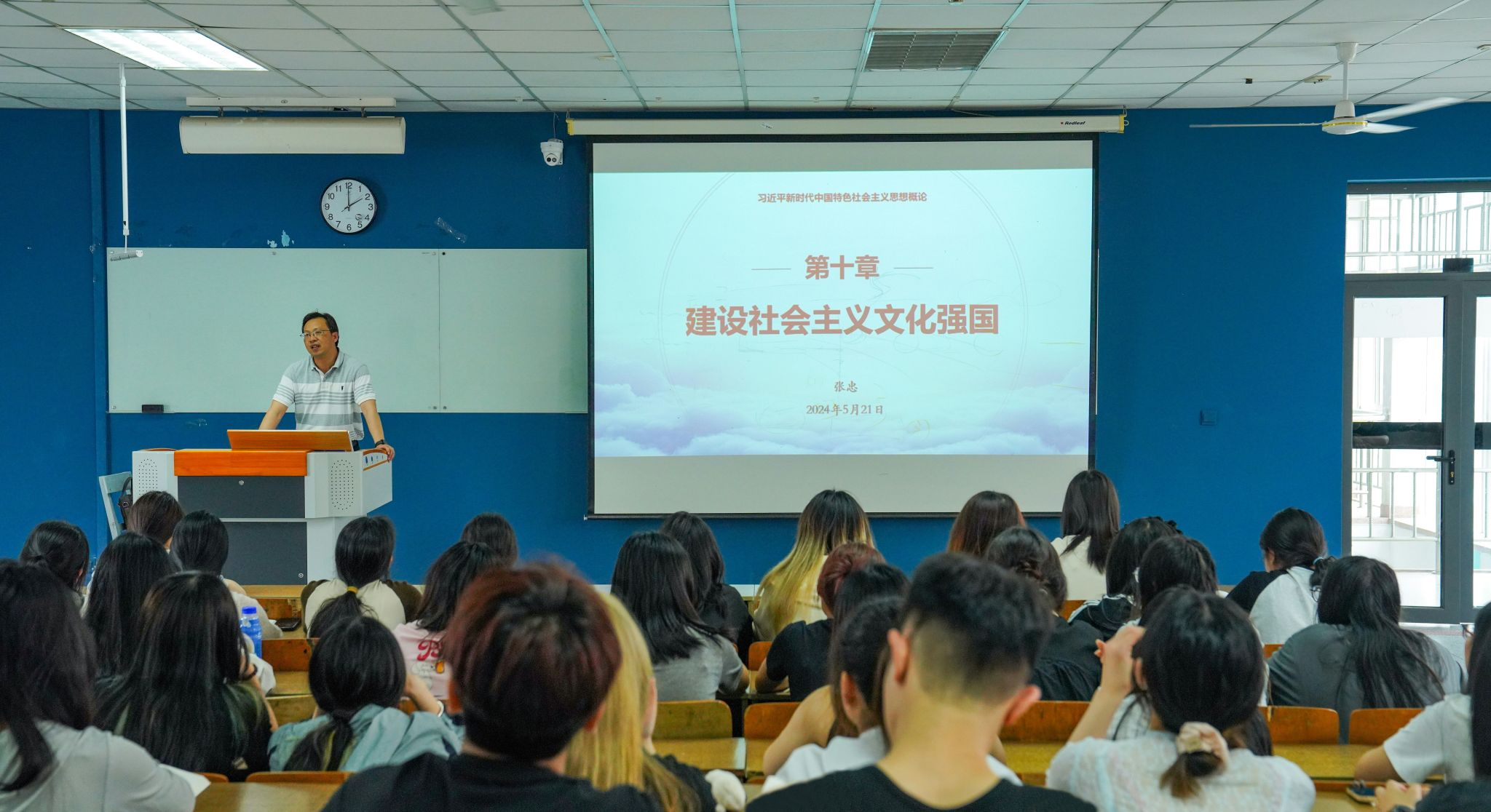 本次授课主题为《习近平新时代中国特色社会主义思想概论》第十章“建设社会主义文化强国”第二专题“建设具有强大凝聚力和引领力的社会主义意识形态”。课上,张忠分析了新时代为什么要建设具有强大凝聚力和引领力的社会主义意识形态、阐述了新时代建设什么样的具有强大凝聚力和引领力的社会主义意识形态,剖析了新时代怎样建设具有强大凝聚力和引领力的社会主义意识形态。张忠强调,意识形态关乎旗帜、关乎道路、关乎国家政治安全,决定文化前进方向和发展道路。建设社会主义文化强国,推动社会主义文化繁荣兴盛,必须建设具有强大凝聚力和引领力的社会主义意识形态。张忠希望青年大学生能够自觉以习近平新时代中国特色社会主义思想为行动遵循,坚定马克思主义信仰和文化自信,以强烈的时代责任感投入到建设具有强大凝聚力和引领力的社会主义意识形态之中。