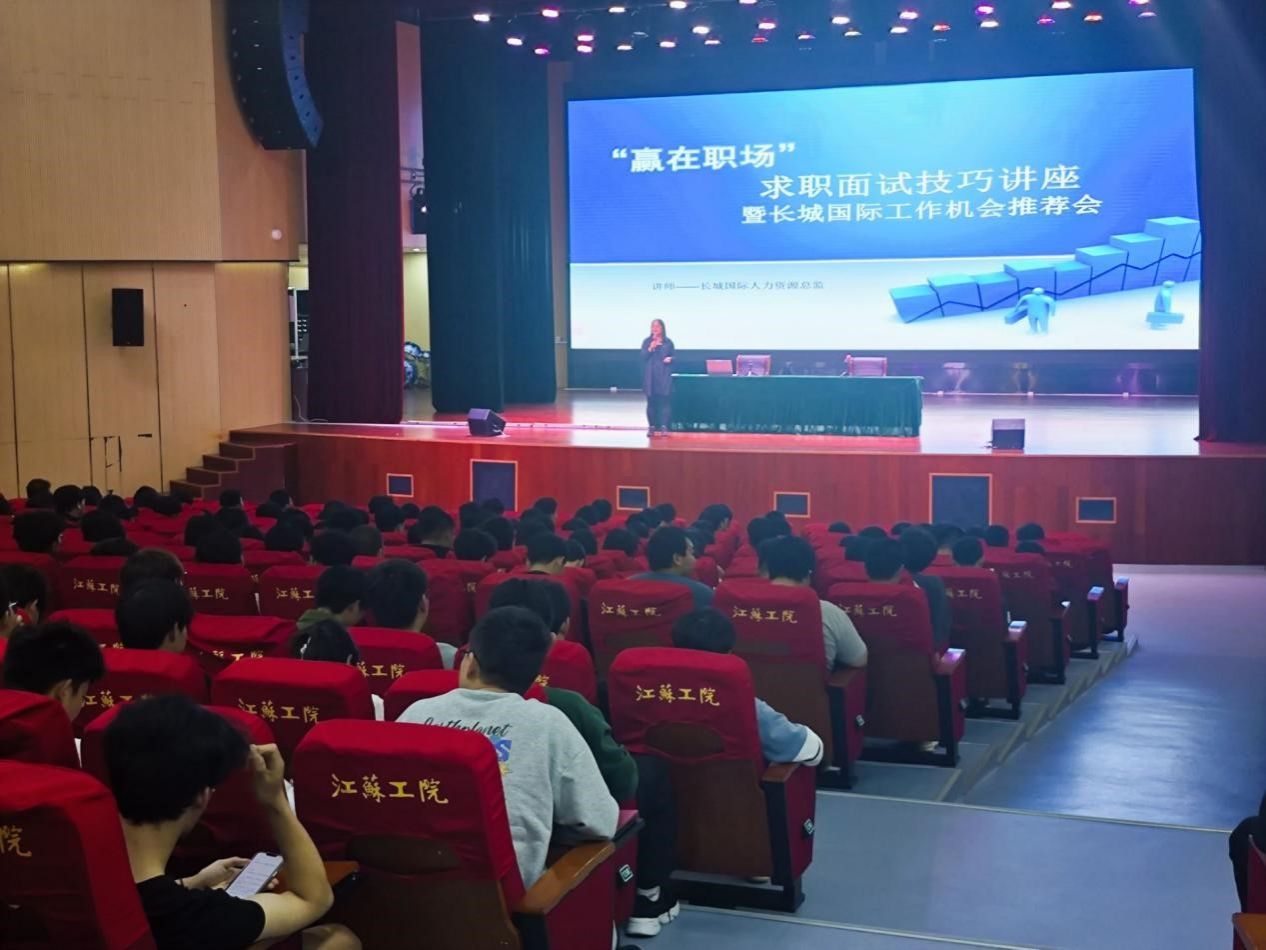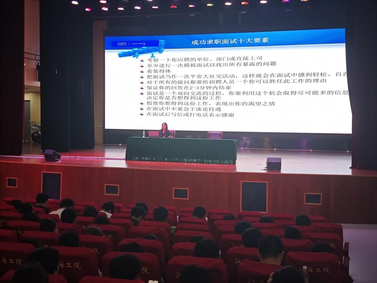 为帮助我校毕业生提升求职技巧,增强职场竞争力,5月22日下午两点,招生就业处在学校海门校区大礼堂举办了“赢在职场”求职面试技巧讲座。中国长城集团国际人力资源部总监李婷婷应邀担任主讲嘉宾。智能制造学院、信息工程学院、航空与交通工程学院和建筑工程学院的就业辅导员以及500余名2025届毕业生代表参加活动 。