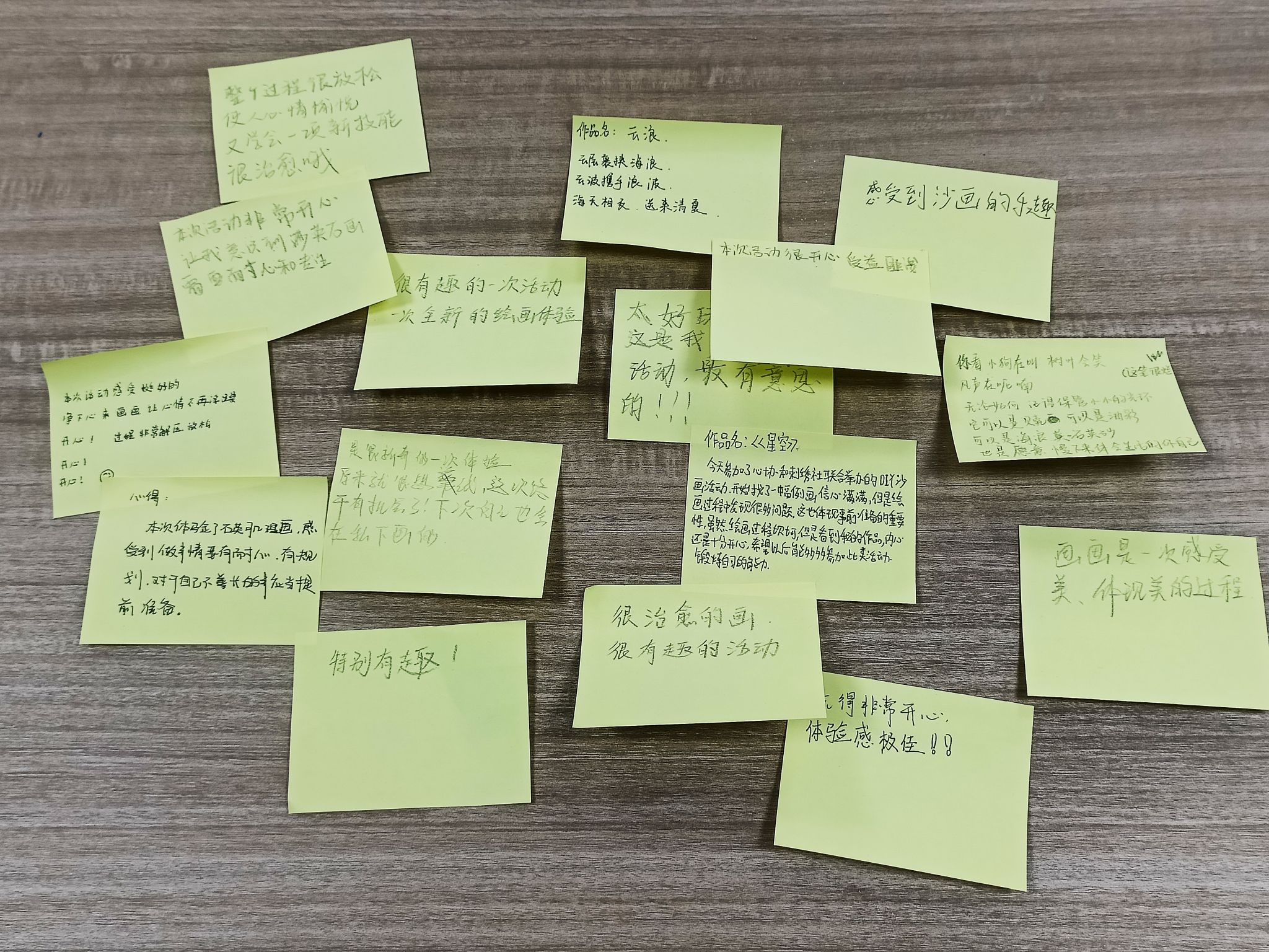 本期创意绘画内容为沙滩贝壳肌理画。活动中,同学们将丙烯颜料和石英砂进行调和,用刮刀作笔,在画板上刮出各种纵横交错、凹凸不平的纹理,用丙烯颜料在富有肌理感的画面上绘制图案,最后粘贴上贝壳以及珍珠装饰作为点缀。经过大家的辛勤创作,一幅幅充满创意和个性的肌理画作品呈现在大家眼前。这些作品如同心灵之镜,投射出各自内心的情感世界。活动结束后,同学们纷纷分享感受:“这次活动让自己感到很治愈”“这是一次全新的绘画体验”“下次还想参加这样的活动”。