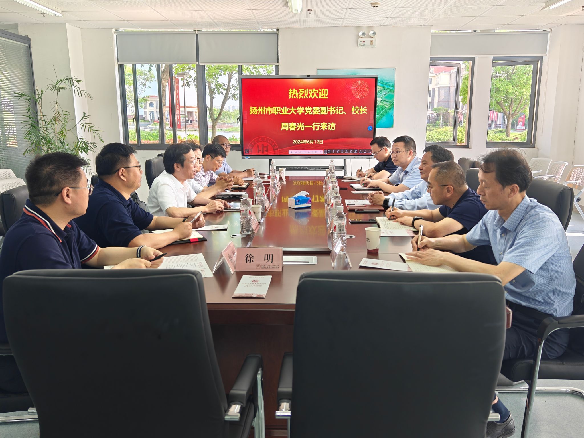 6月12日下午,扬州市职业大学党委副书记、校长周春光一行莅临我校海门校区调研交流。校党委书记秦志林、副校长孙兵及相关部门负责人出席交流会。