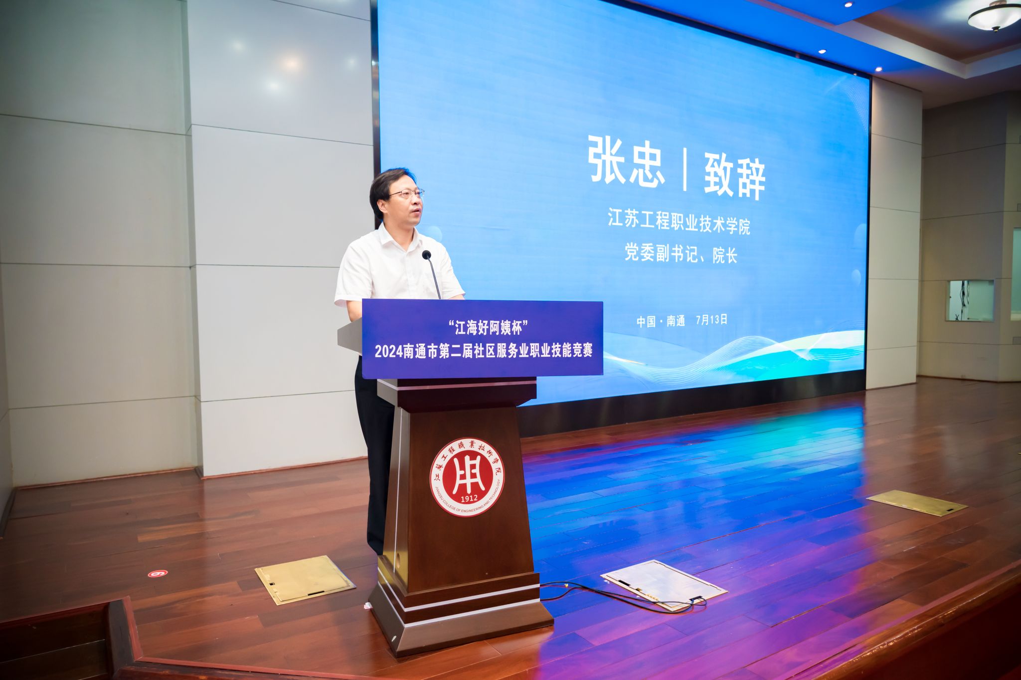 张忠代表学校对大赛的开幕致以热烈祝贺,并对长期以来关心支持我校事业发展的社会各界表示衷心感谢。他介绍了学校传承张謇“学必期于用,用必适于地”的办学理念以及坚持立德树人、育训并举所取得的办学业绩。伴随我国城市化的深入推进和人口老龄化趋势的加剧,学校积极贯彻国家战略,在省内高职院校中较早开设智慧健康养老服务与管理专业,深化政行校企合作,与行业企业共建健康产业学院和省级产教融合型企业,共同开发行业标准和课程教材,携手开展中国特色学徒制订单班人才培养,共建江苏省高校银龄学习中心,着力为南通这个“世界长寿之都”培养“青春养老人”的改革发展成效。他表示,作为大赛承办单位,学校严格按照大赛组委会要求和规程,用最高的标准、最好的服务、最佳的状态,为参赛选手提供优良的竞赛环境和周到细致的服务,创造良好的保障条件,确保办成公平公正、圆满成功的大赛。