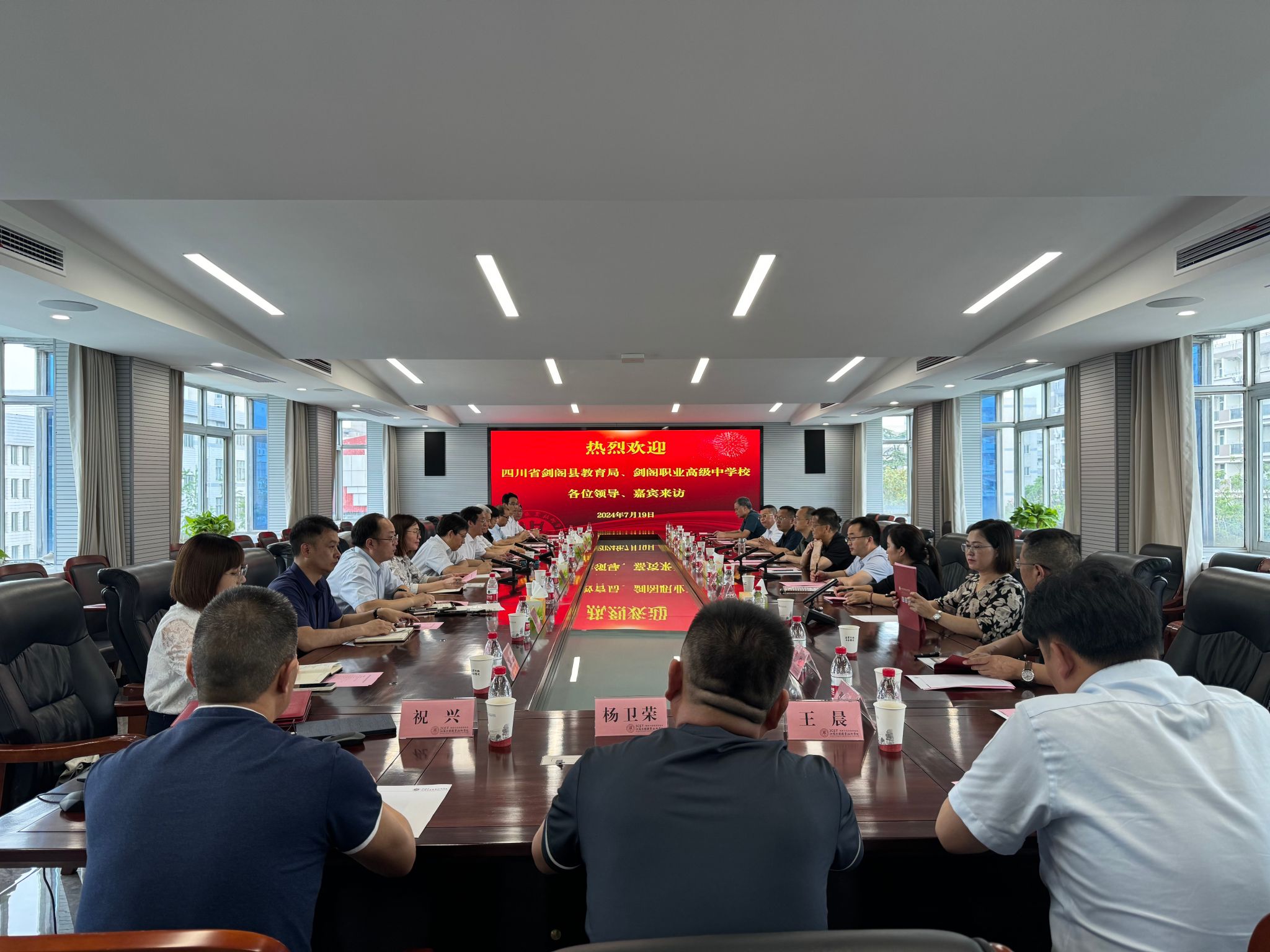 王勋勇对我校的热情接待表示衷心感谢,对剑阁县当地产业结构以及剑阁职中的发展历程做了简要介绍,表示我校在推进校企合作产教融合,助力赋能区域经济建设等方面的成功做法和取得的成绩对他们触动很大,坚定了他们办好职业教育,服务地方产业经济的信心。李文峰介绍了剑阁职中的办学历史和基本情况,表示我校创办人张謇提出的“父教育而母实业”的教育思想博大精深、值得借鉴和学习,表达了与我校深度合作的意向,并就学校目前的办学挑战、生源挑战、师资挑战进行了交流。