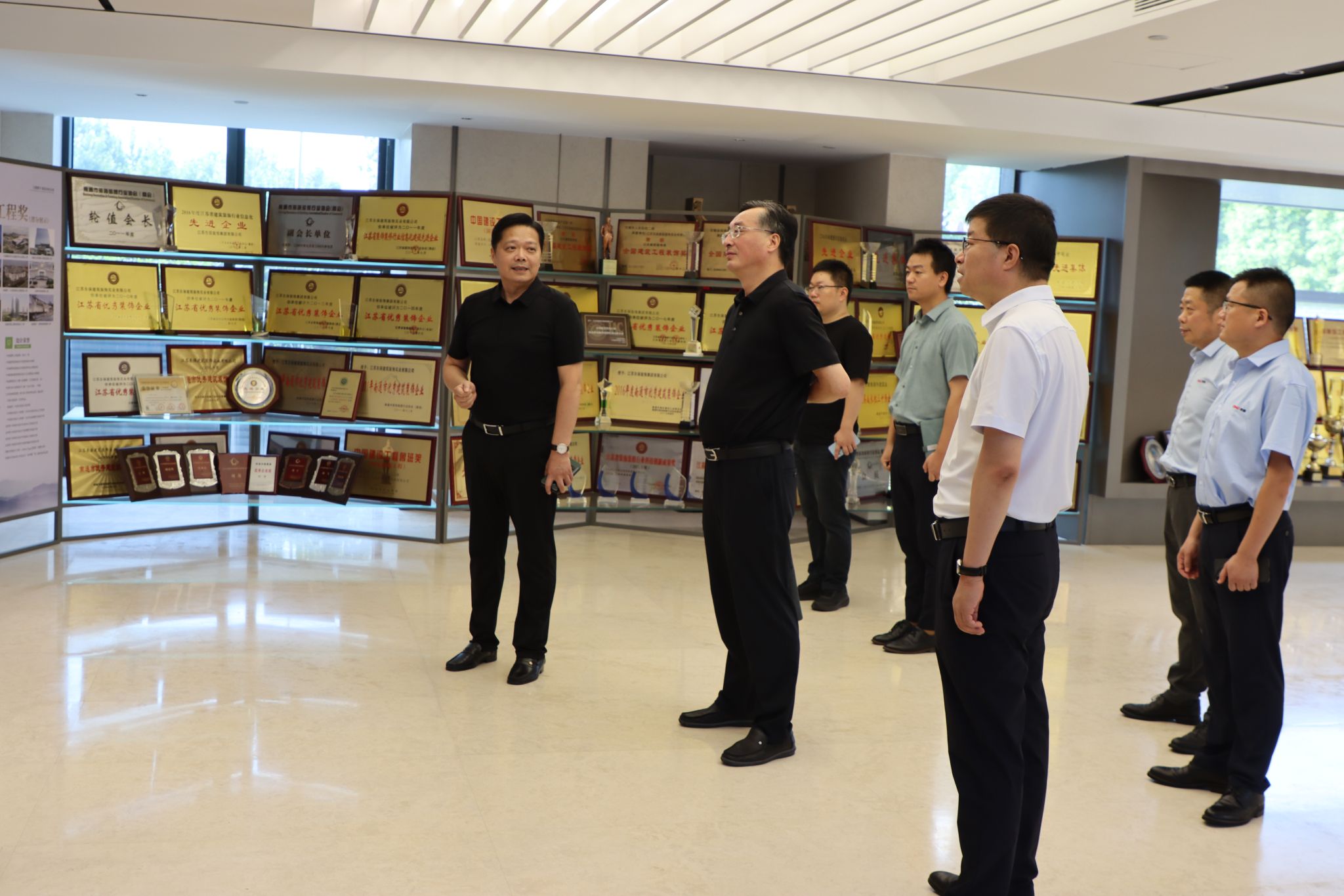 东保集团董事长刘奇、总经理范剑烁、副总经理周成国等热情接待了调研团队。刘奇带领大家参观了集团荣誉室,对企业的发展历史、文化精神、经营理念、标志性项目和相关业务进行了简要介绍。刘奇回顾了与我校的校企合作历史,希望双方在现有基础上,不断拓宽合作空间、提升合作层次。
