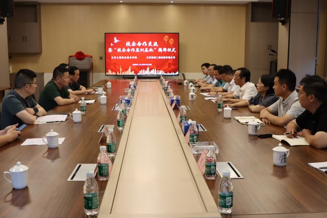 在江苏南通二建集团有限公司,集团公司监事会主席陈建国、公司副总经理李新、公司副总经理黄辉、公司副总经理兼启东公司经理薛辉、公司总工程师孙成伟及公司人力资源部经理李海彬等给予热情接待。我校一行观看了南通二建集团宣传片,了解公司的发展历史、组织架构、产业布局和标志性业绩。陈建国介绍了南通二建当前的经营业态、战略规划及产学研合作情况,希望通过校企合作,在建筑产业转型发展和技能型人才方面形成合力。