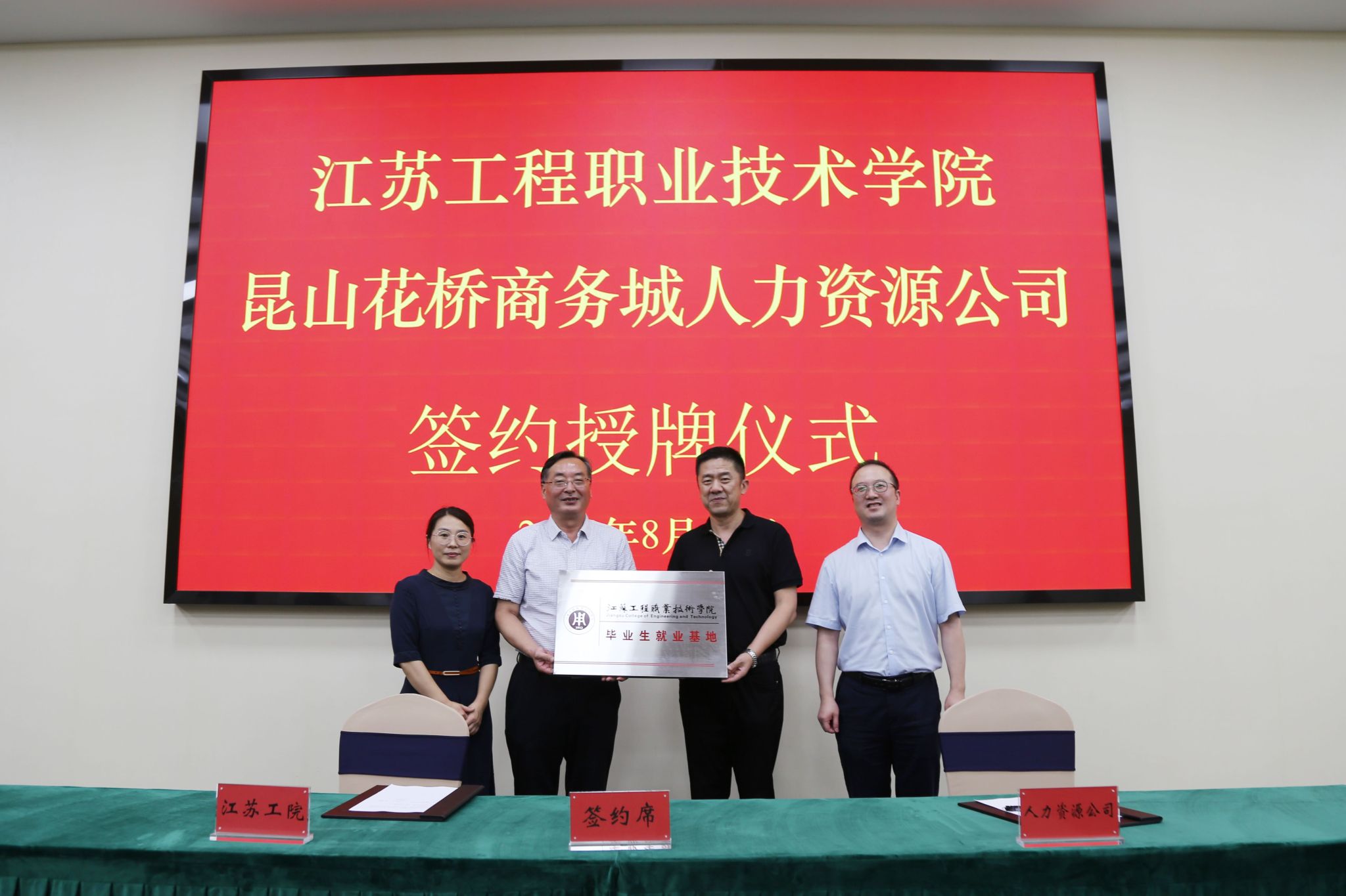 邓海龙一行来到昆山花桥国际博览中心与昆山花桥国际商务城人力资源公司,并举行了就业基地签约授牌仪式。银桥集团党委委员、副总经理徐卫星就昆山花桥国际商务城的发展现状、人才需求情况等进行了详细的介绍,并希望高校能够与国际商务城内企业建立校企合作,希望更多的大学生能够了解花桥,到花桥就业、创业。邓海龙介绍了我校的发展概况,教学改革与人才培养特色等。他指出,校企合作是高校人才培养模式创新的突破点,昆山花桥在人才政策、人才培养、人才吸引方面的创新举措为我校学子搭建了良好就业实训平台,希望与花桥在人才培养、人才输送方面积极开展多方位、多渠道合作,把我校的优秀学生输送到花桥,让更好更多的人才到商务城就业、创业。