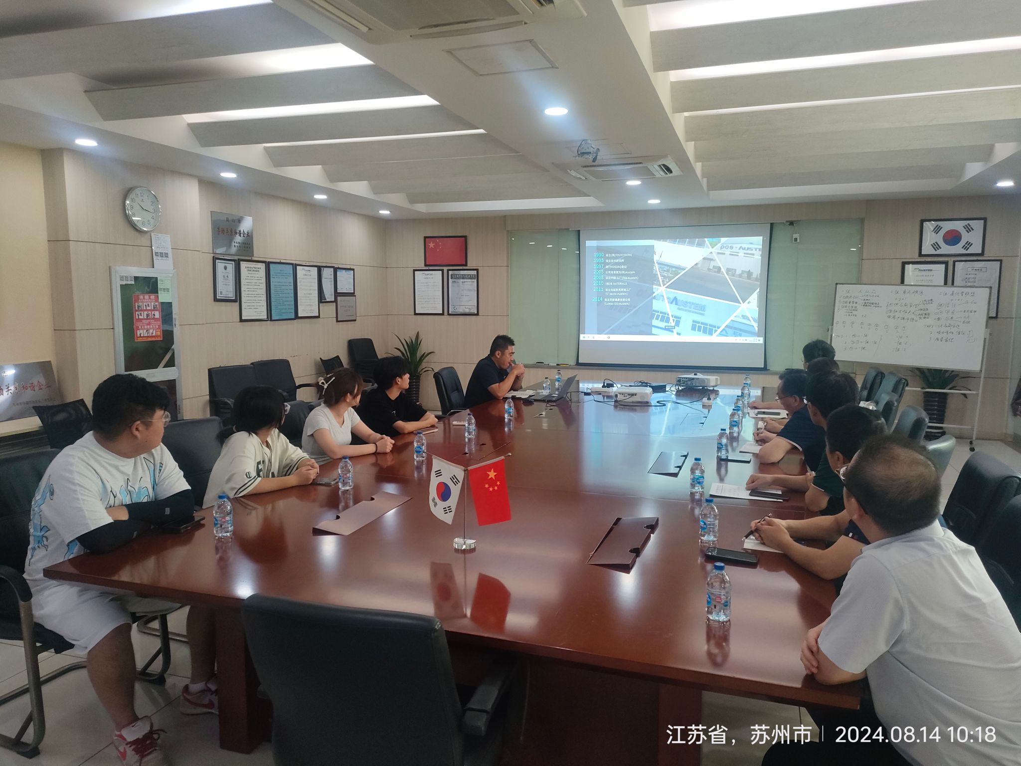 8月14日,实践团队在学校党委副书记邓海龙的带领下,赴浦项奥斯特姆(苏州)汽车配件有限公司和昆山花桥国际商务城人力资源公司进行走访调研。浦项公司的宣传短片使团队成员对公司发展历史和规模有了初步了解,现场的参观使团队成员感受到了浓厚、严谨的工作环境和氛围。访谈会上,邓海龙介绍了学校的发展历程、人才培养情况、当前就业状况及后期发展规划。企业负责人对企业发展历程、人才需求以及薪资待遇、培养体系等内容进行了详细介绍。