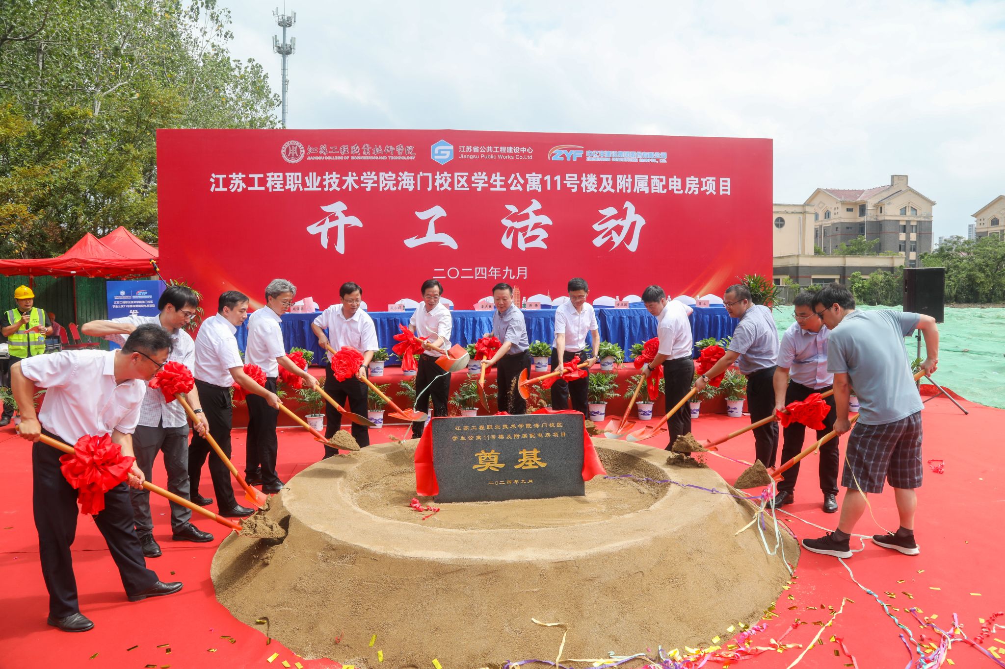 9月12日上午,我校举行海门校区学生公寓11号楼及附属配电房项目开工仪式。校党委书记秦志林宣布项目开工,校长张忠在开工仪式上讲话,与会领导共同为项目培土奠基。开工仪式由副校长孙兵主持。