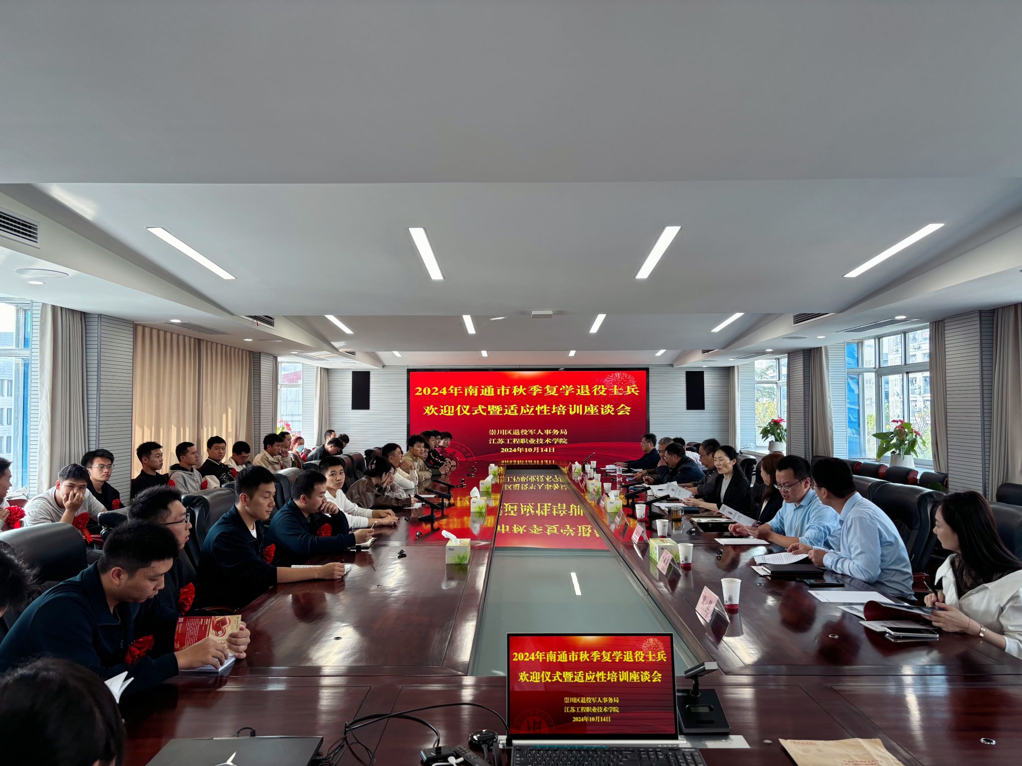 10月14日下午,2024年崇川区秋季复学退役士兵返乡欢迎暨适应性培训座谈会在我校行政楼第一会议室召开。校党委委员、副校长丛彬彬,南通市退役军人事务局党组书记、局长周海斌,南通市退役军人事务局党组成员、副局长顾羽出席,市、区两级退役军人事务局、高校人武部的相关人员及30余名复学退役大学生士兵参加。会议由崇川区退役军人事务局党组书记、局长马胜虎主持。