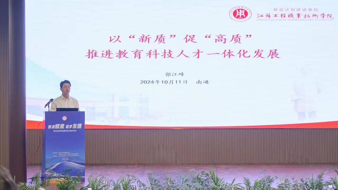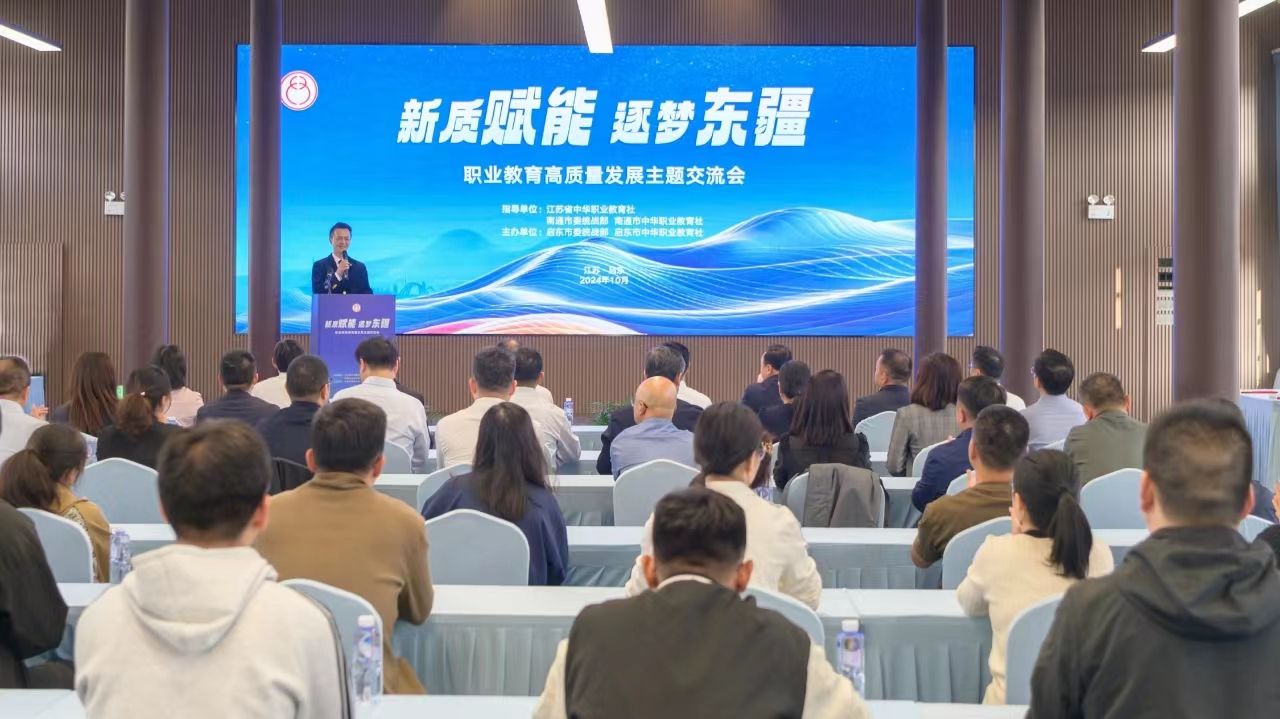 10月11日至12日,由启东市委统战部、启东市中华职业教育社主办的“新质赋能 逐梦东疆”职业教育高质量发展主题交流会在启东市举办。江苏省委统战部一级调研员、省中华职教社秘书长胡恒锁,省中华职教社秘书处主任、长三角区域中华职教社基层组织暨社员单位联席会议秘书长袁旭,南通市委统战部副部长、市中华职教社副主任王文圣,启东市委常委、统战部部长、组织部部长樊毅杰,省内相关职业院校领导,启东市中华职教社社员代表等出席活动。我校党委委员、副校长郭江峰受邀参会并作主旨发言。
