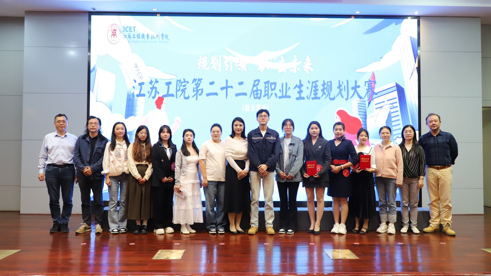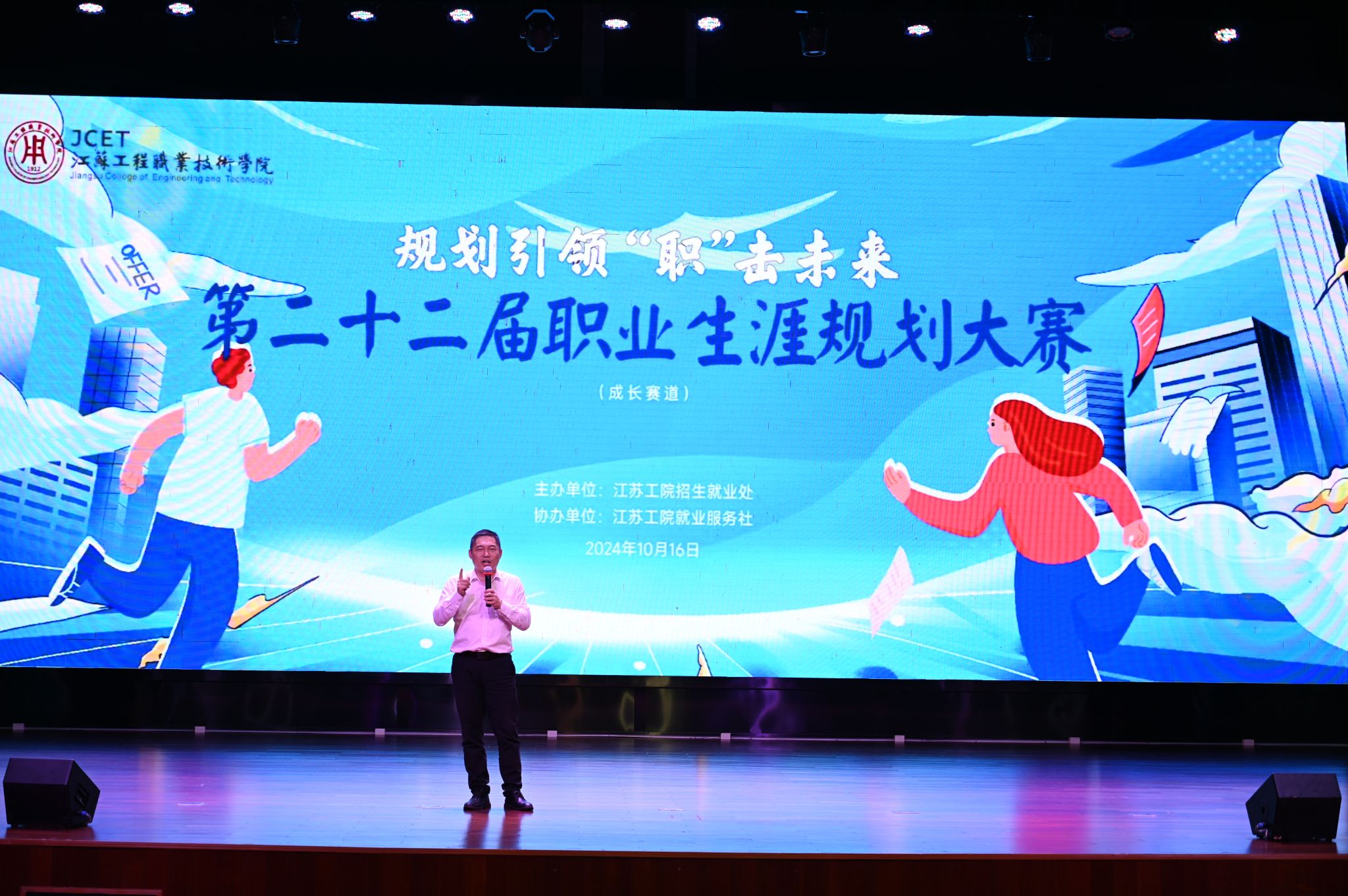 10月16日下午,我校第二十二届大学生职业规划大赛暨江苏省第十九届大学生职业规划大赛选拔赛分别在崇川校区致知楼报告厅和海门校区大礼堂举行。南通无限广告装潢有限公司总经理宋亚军,中天钢铁集团(南通)有限公司人力资源处副处长陈霄、招聘经理王海润,江苏业勤服饰有限公司招聘经理左莹,南通迅博信息科技有限公司运营专家曹佳丽,校继续教育学院院长江荣华,马克思主义学院党总支书记钱晋,创新创业学院副院长王小红,学工处副处长朱平,海门校区管理办公室副主任梁海峰受邀担任评委。招就处全体工作人员、各二级学院党总支书记、就业辅导员、指导老师及两校区学生代表共计千余人观看了比赛。