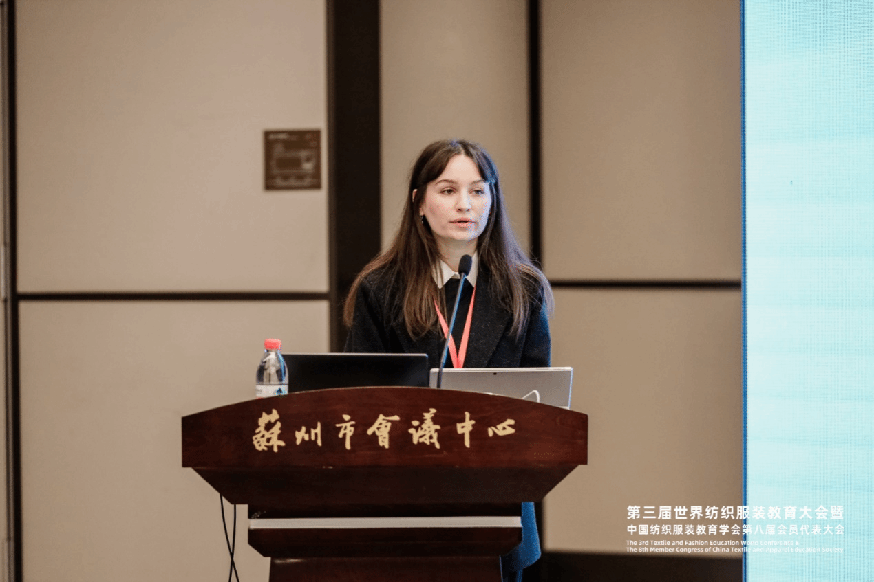 在职教分会第一阶段,老挝琅南塔省教育体育厅副厅长铜宋·安平宋、罗马尼亚时尚委员会主席安卡·巴兰、巴基斯坦伊斯兰共和国旁遮普省技术教育和职业培训局技术总监艾扎兹·海德尔、韩国国立昌原大学教授金世真、意大利佛罗伦萨自由美术学院时尚设计师朱莉亚·切尔沃尼等国际专家走上讲台,分别做了题为“中老职业教育合作与发展”“中国—罗马尼亚,75年的合作,大学与政府共同努力发展纺织工业”“巴基斯坦技术教育与职业培训”“数字传媒和服装设计教育” “新一代消费群体的时尚选择”的报告。