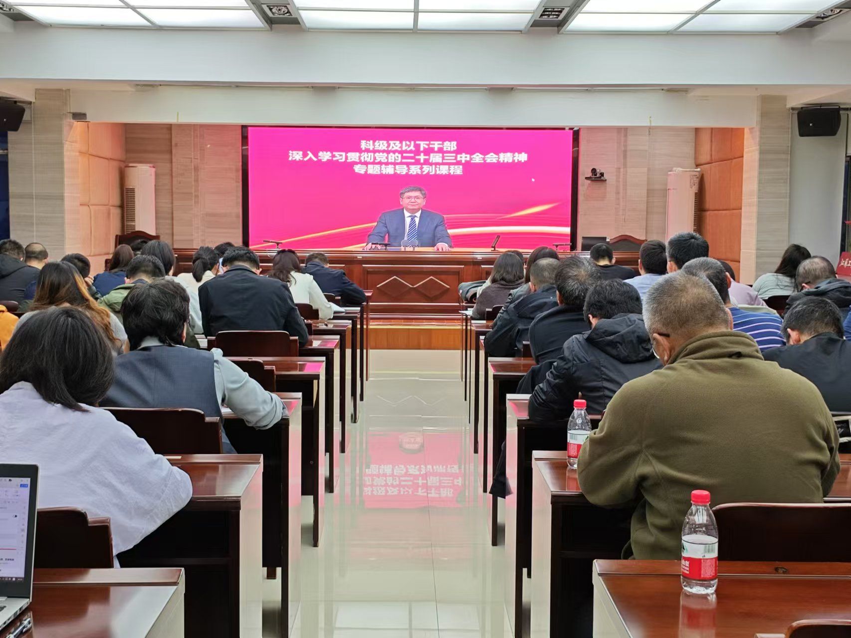 11月15日下午,党委组织部举办科级干部学习贯彻党的二十届三中全会精神培训。学校全体中层副职、内设机构科长、办公室主任、团总支书记等科级干部参加培训。