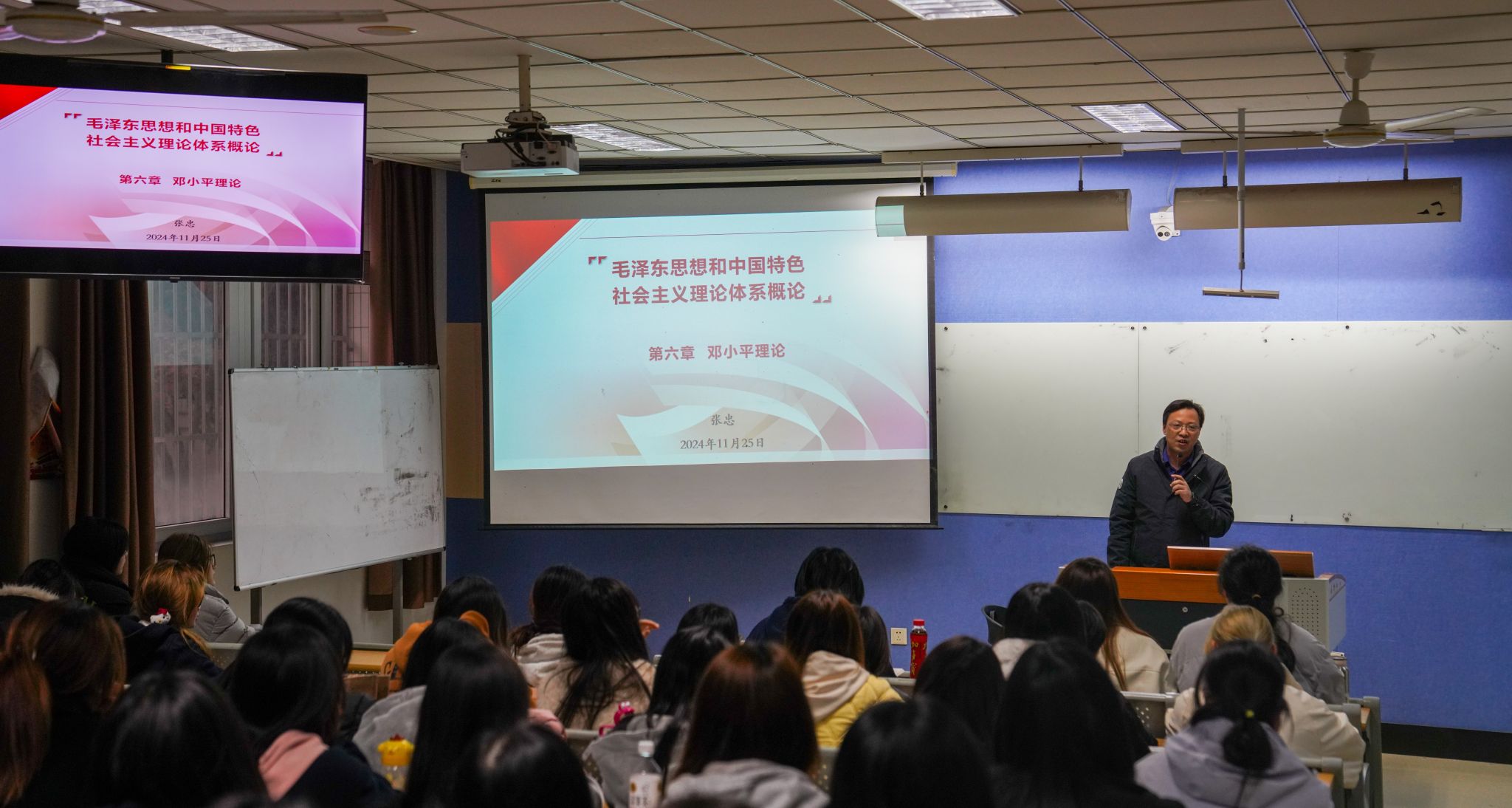 11月25日下午,校长张忠走进课堂,为经济管理学院23幼管专业的学生讲授思政课,与青年大学生面对面交流。本次授课内容是《毛泽东思想和中国特色社会主义理论体系概论》课程第六章“邓小平理论”第一专题“邓小平理论首要的基本的理论问题和精髓”。