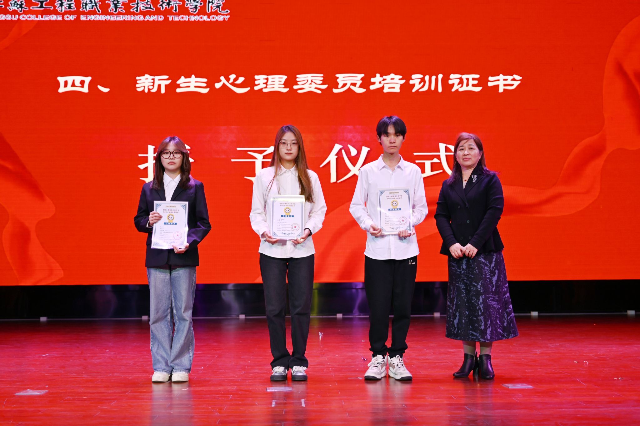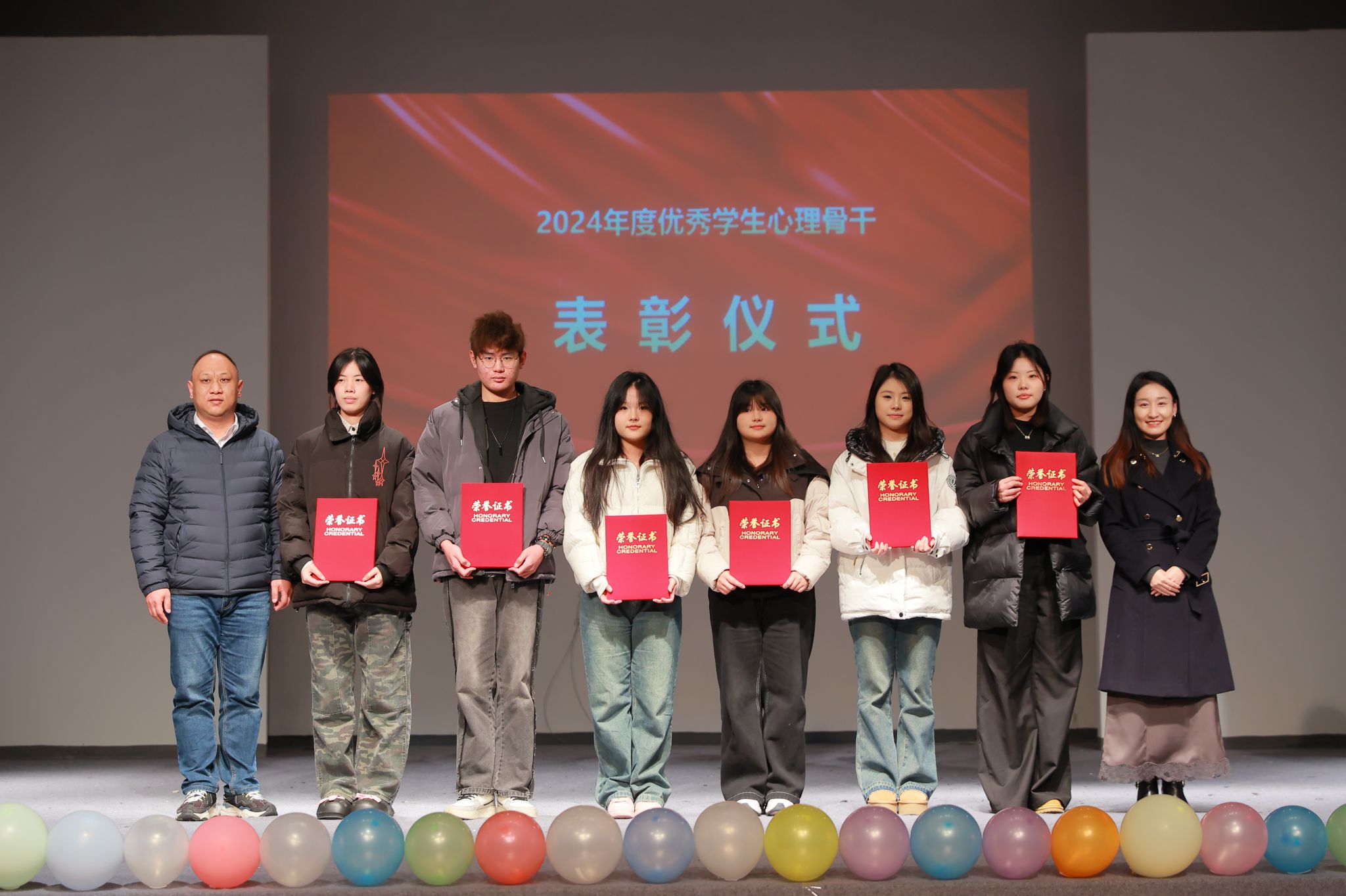 表彰仪式上,丛彬彬在讲话中强调了心理健康在大学生成长中的重要性,对学校近年来在心理健康教育方面取得的显著成效给予了高度评价,并提出全员育人、互助陪伴、笃志润心三点倡议,鼓励大家共创温馨和谐校园。会上对在2024年度心理健康教育系列活动中评选出来的优秀原创作品获奖学生、优秀心理班会获奖班级和优秀心理骨干予以表彰,以发挥优秀榜样的示范带动作用。表彰仪式最后,丛彬彬向新生心理委员代表授予心委培训证书,希望他们不负众托,不忘助人初心,为校园心理健康工作作出贡献。