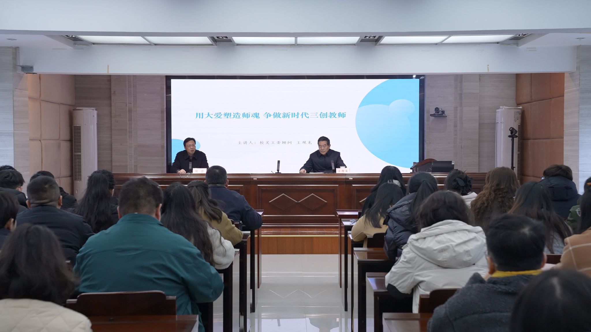 为深入学习贯彻习近平总书记关于教育的重要论述和全国教育大会精神,加强新形势下师德师风建设,12月18日,学校原党委书记、研究员、关工委顾问王观龙为青年教师作了题为“用大爱铸造师魂,争做新时代三创教师”的师德师风专题讲座。学校近三年入职青年教师以及党委教师工作部、关工委相关人员参加。讲座由校长、党委副书记张忠主持。