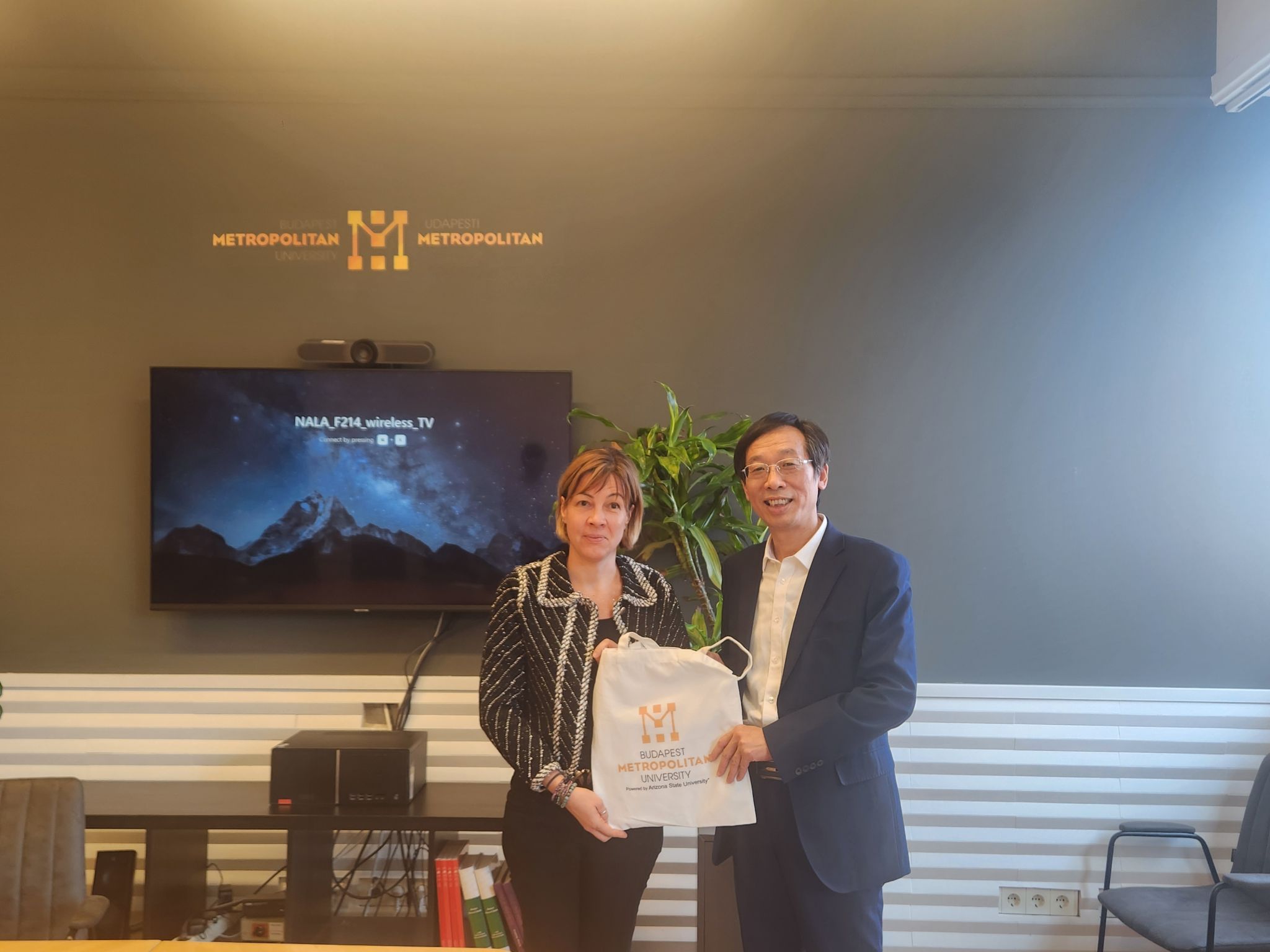 12月16日上午,校党委书记秦志林访问了匈牙利布达佩斯城市大学,并与布达佩斯城市大学国际交流中心负责人艾娃女士进行深入会谈交流。校外事办主任林娟、科研处处长姜生、纺织服装学院党总支副书记刘桂阳、艺术设计学院老师袁思周等参加访问。