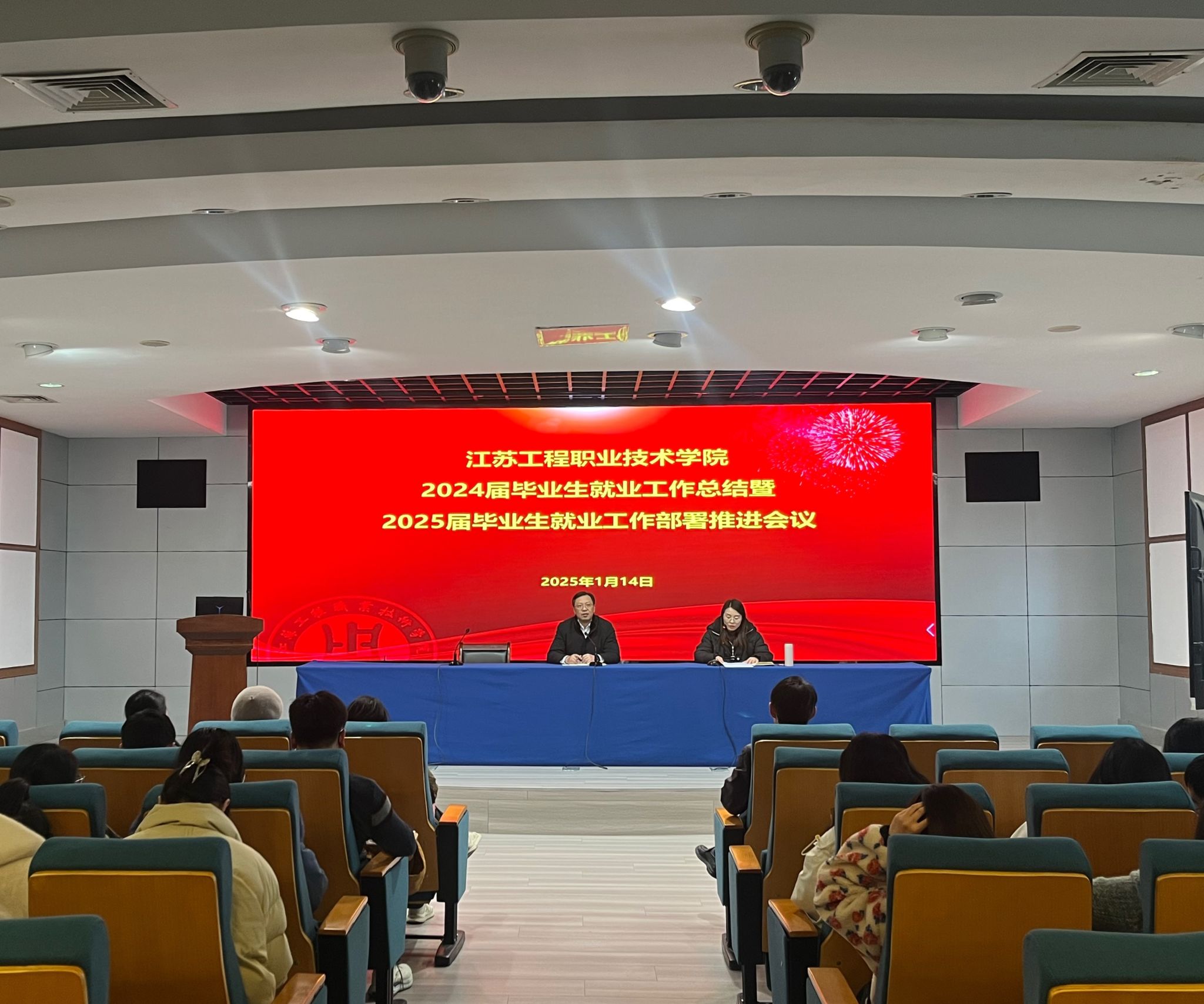 1月14日下午,我校2024届毕业生就业工作总结暨2025届毕业生就业工作部署推进会在强毅楼十二楼报告厅召开。校长张忠,招生就业处、教务处、学工处、团委等相关部门负责人,各二级学院党政负责人,就业辅导员参会。会议由招生就业处处长储玲主持。