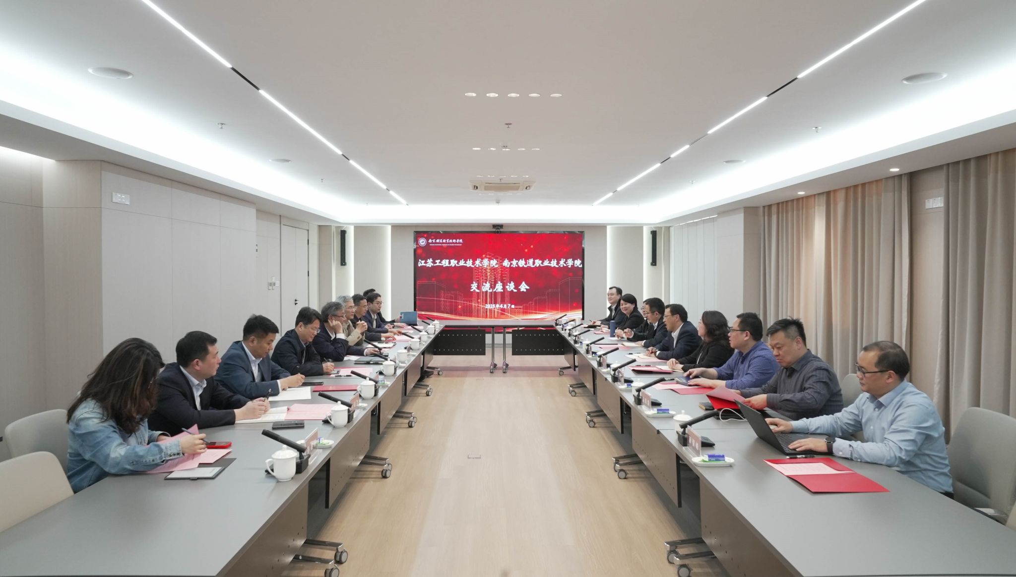 在南京铁道职业技术学院,该校党委书记贺兴初对张忠校长一行的到来表示热烈欢迎,介绍了学校的基本情况、发展历史和办学特色,并就学校在省委高质量综合考核、二级管理机制体制改革、师资队伍建设、专业建设与教学质量提升、科技研发与社会服务、郑和学院建设等方面取得的成绩及工作经验进行了详细介绍。会后,调研组一行实地考察了该校国家高铁综合实训基地。