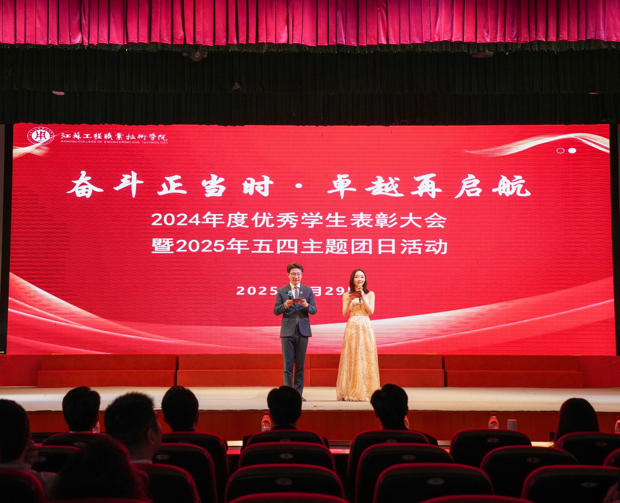 4月29日下午,“奋斗正当时·卓越再启航”2024年度优秀学生表彰大会暨2025年五四主题团日活动在我校崇川校区大礼堂举行。校党委书记秦志林,党委副书记、校长张忠,党委副书记丛彬彬,党委委员、副校长孙兵,党委委员、纪委书记(监察专员)顾剑锋,党委委员、副校长郭江峰,党委委员、副校长尹桂波,党委委员、宣传部部长王希颖出席大会。学校相关党政职能部门负责人,各二级学院(部)党政领导、指导教师代表、辅导员、班主任以及700余名学生代表相聚一堂,共同见证和庆祝属于工院优秀学子的高光时刻。本次大会由党委学工部、团委联合主办,14000多名师生、学生家长在线观看了现场直播。