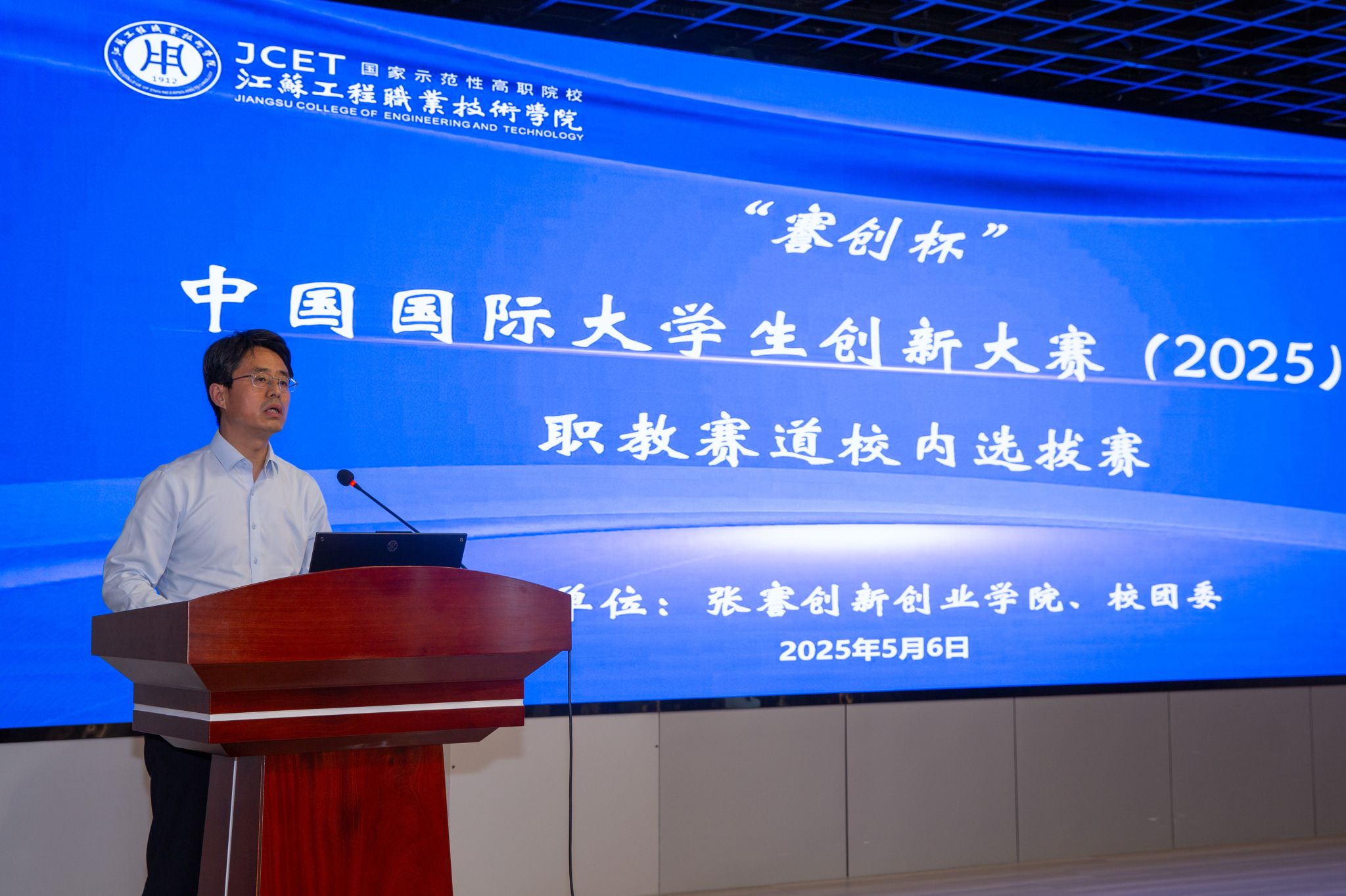 5月6日下午,中国国际大学生创新大赛(2025)职教赛道校内选拔赛在强毅楼12楼演播厅成功举办。校党委委员、副校长郭江峰,张謇创新创业学院副院长王小红,团委副书记沈雯以及各二级学院分管大赛工作领导、参赛项目指导老师、项目团队成员和部分师生代表到场观摩比赛。
