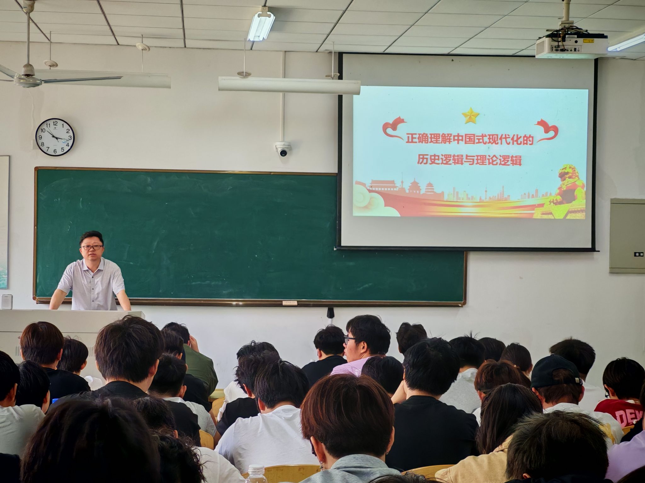 5月27日下午,校党委委员、副校长孙兵走进思政课堂,为智能制造学院24级机电一体化技术专业学生讲授《形势政策与人生》思政课,授课内容为《正确理解中国式现代化的历史逻辑与理论逻辑》。