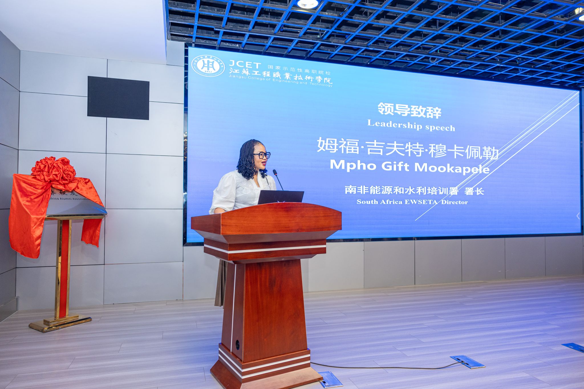 会上,江苏工院南非校友会正式成立。张忠与姆福·吉夫特·穆卡佩勒共同揭牌,标志着中南职业教育合作从短期培训迈向长期生态构建。校友会将持续促进毕业生与院校、企业的互动,为南非新能源行业输送更多高素质技术人才。