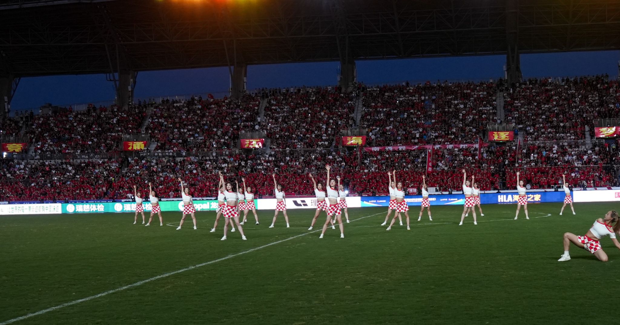 7月19日晚,江苏省城市足球联赛(苏超)第七轮焦点战在如皋奥体中心打响,南通队主场迎战盐城队。在这场南通队对阵盐城队的对决中,我校为南通啦啦队量身定制的惊艳演出服点燃现场氛围,生动诠释了“体教融合”服务地方赛事的创新实践。