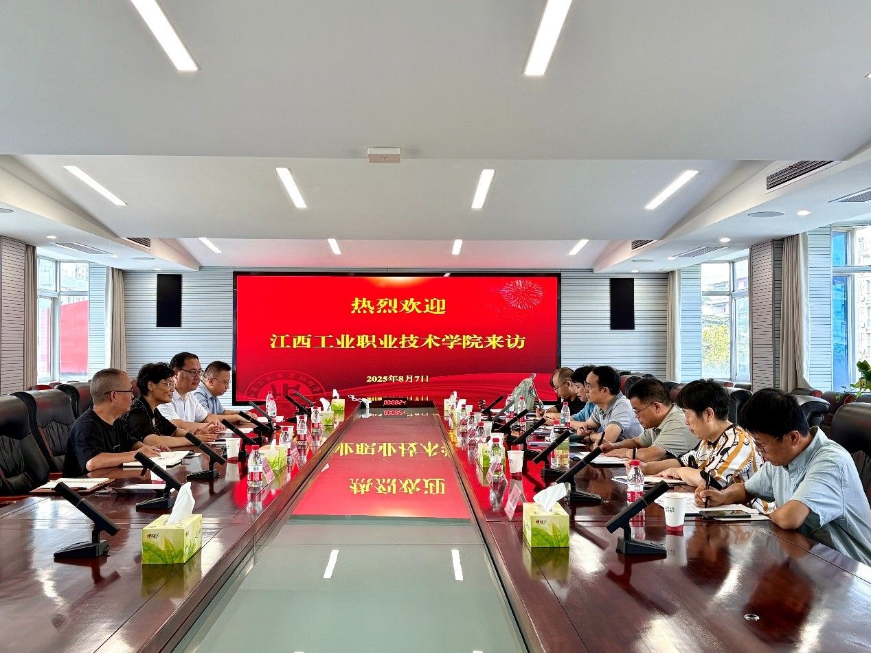 钱锁梅代表学校对蔡冬根书记一行的到来表示热烈欢迎。她介绍了我校的办学历程、特色专业群布局及在服务区域发展、深化产教融合方面取得的成效。蔡冬根介绍了江西工业职业技术学院的办学特色、专业设置及当前聚焦高质量发展的重点任务。交流中,双方围绕“职教高考改革、高水平专业(群)建设、高素质技术技能人才培养模式、实训基地建设与效能提升”等主题展开了深入研讨。